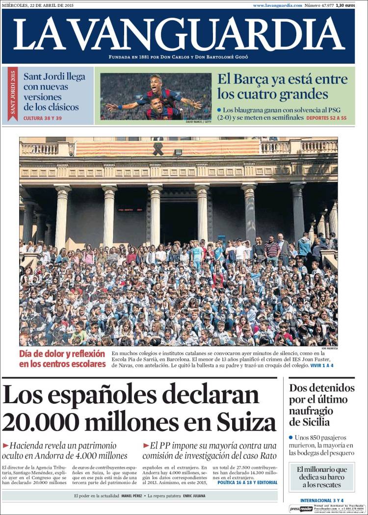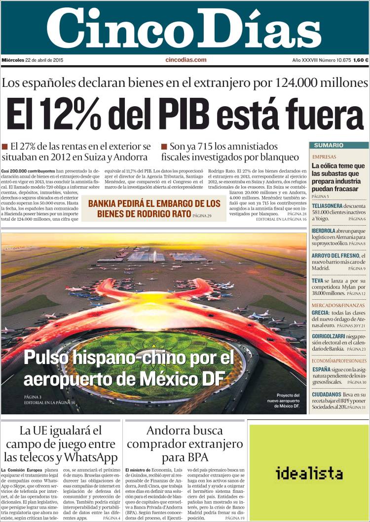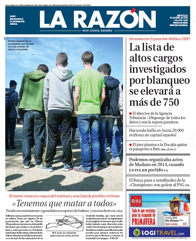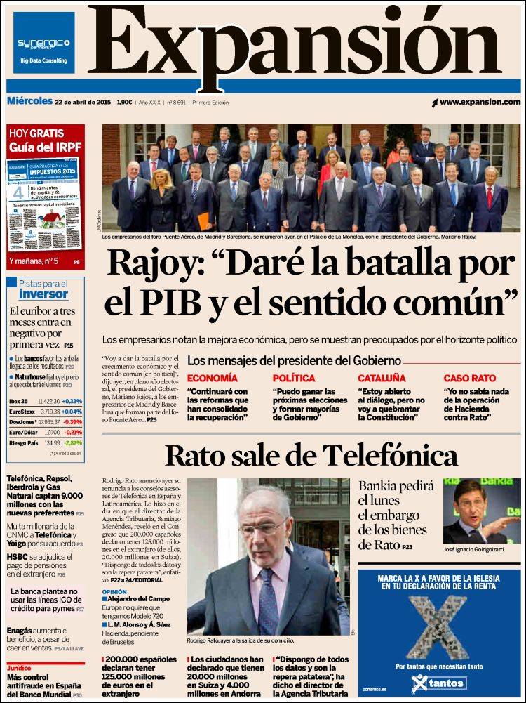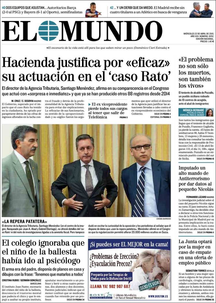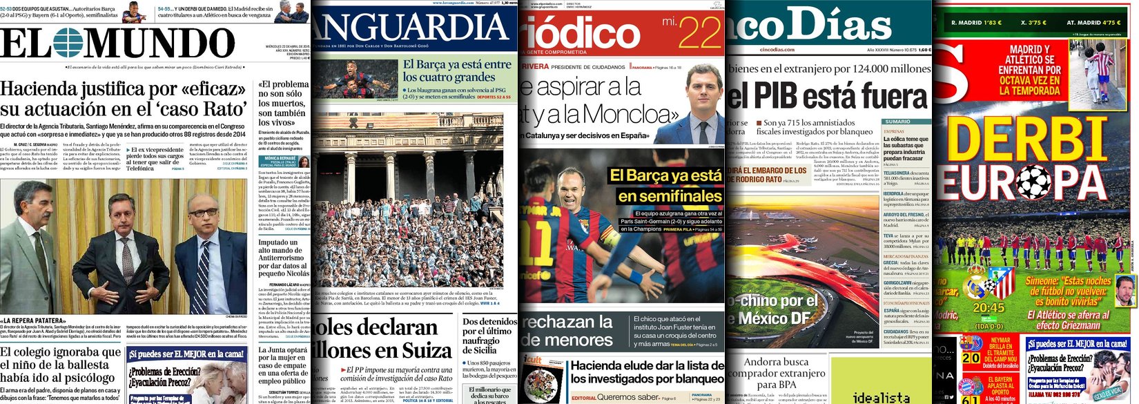 Portadas de los diarios El Mundo, El País, ABC, La Razón, La Vanguardia, El Periódico, Cinco Días, El Economista, Expansión, Marca, As, Mundo Deportivo y Sport.