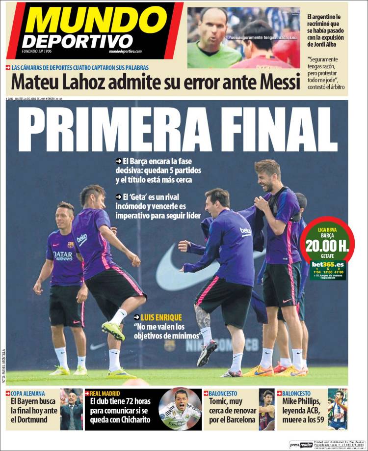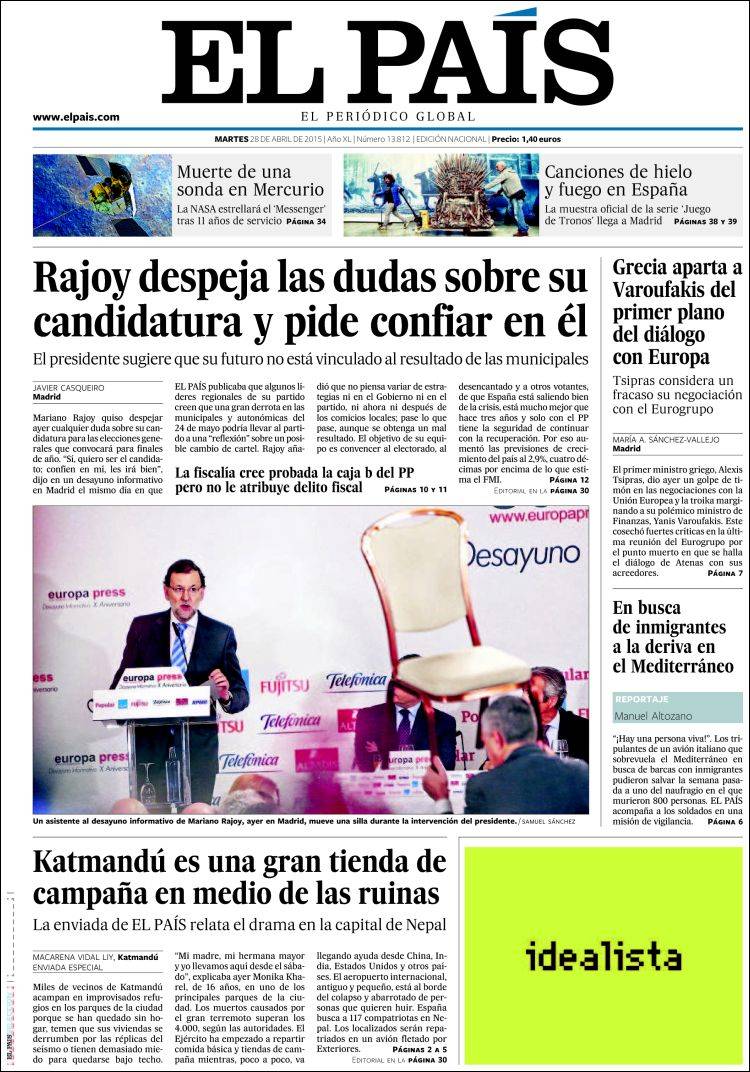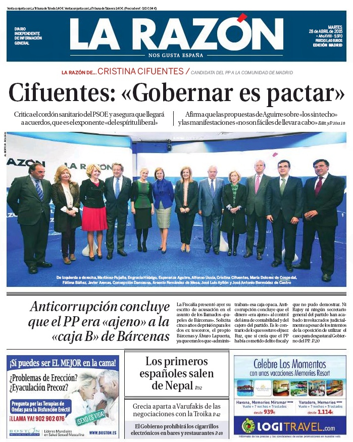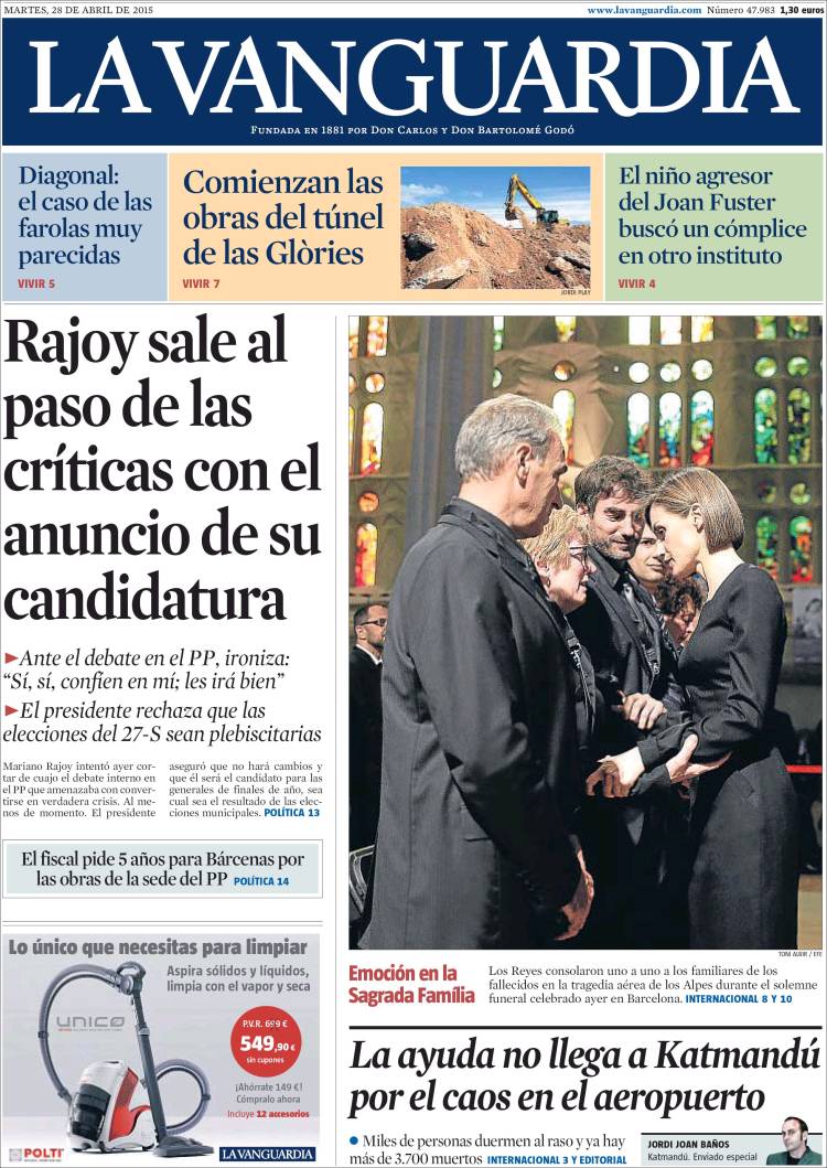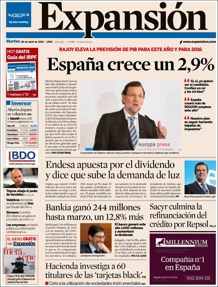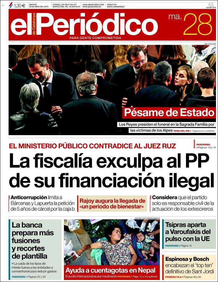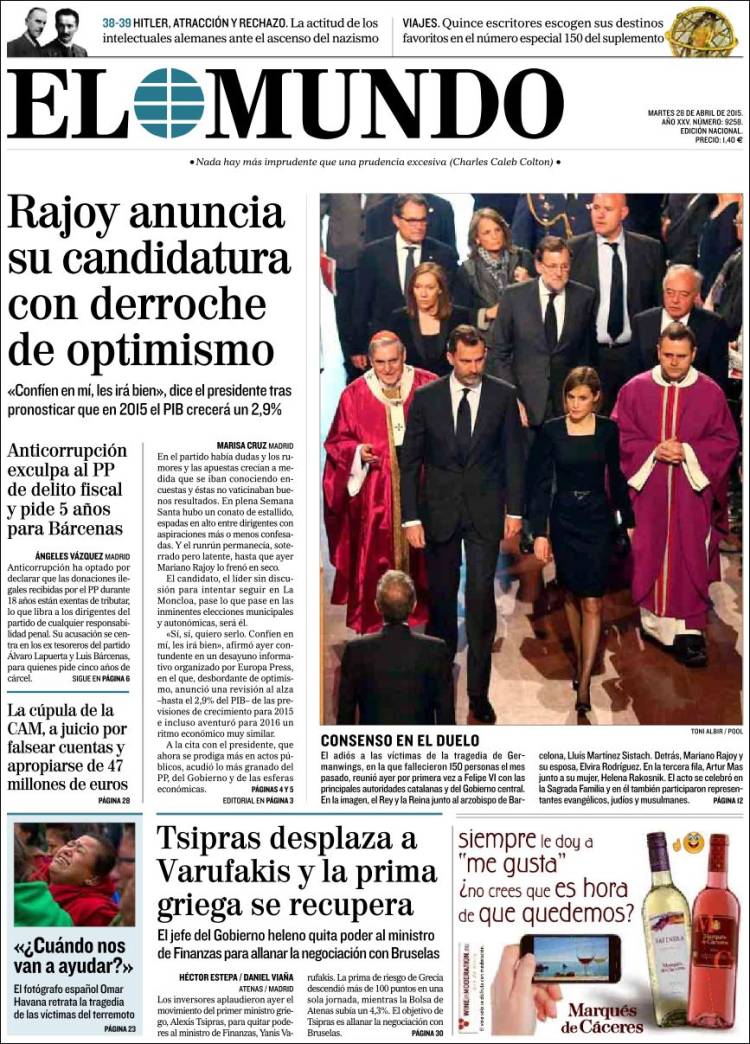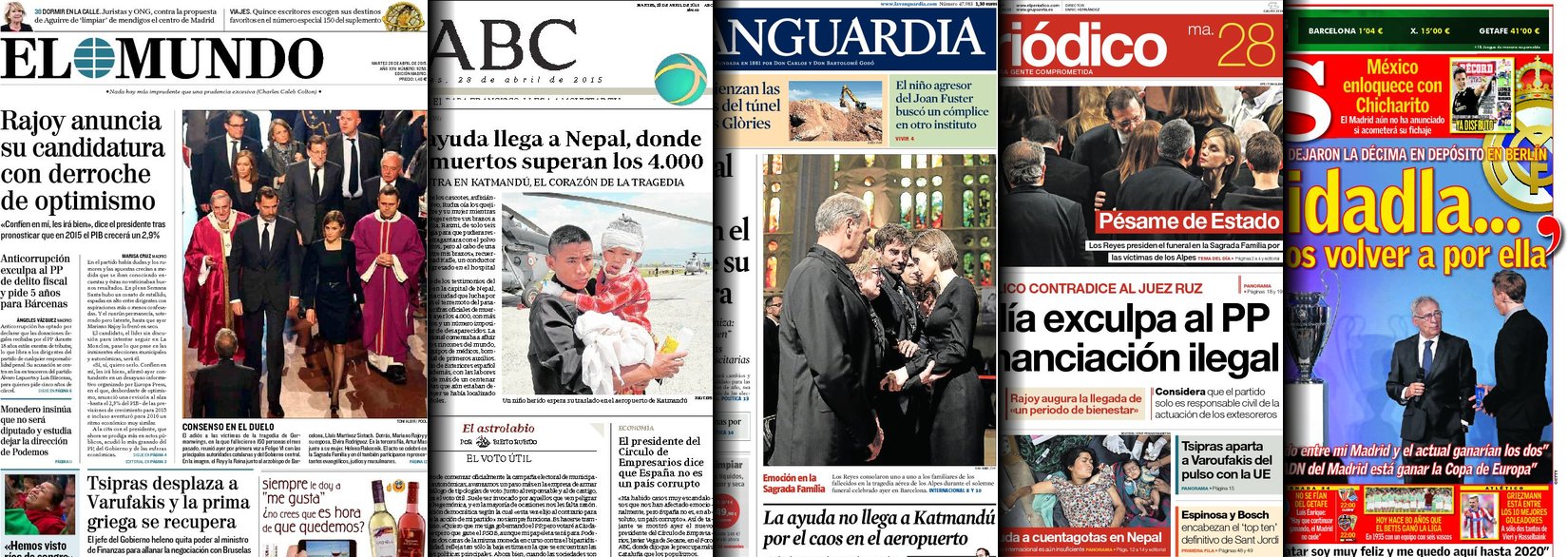 Portadas de los diarios El Mundo, El País, ABC, La Razón, La Vanguardia, El Periódico, Cinco Días, El Economista, Expansión, Marca, As, Mundo Deportivo y Sport.