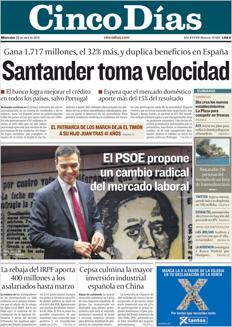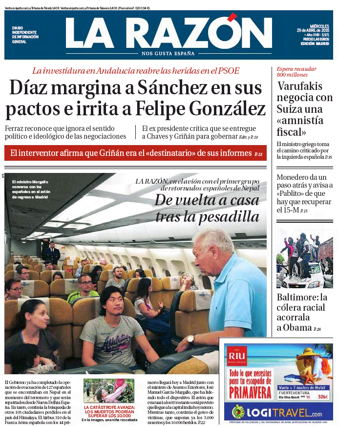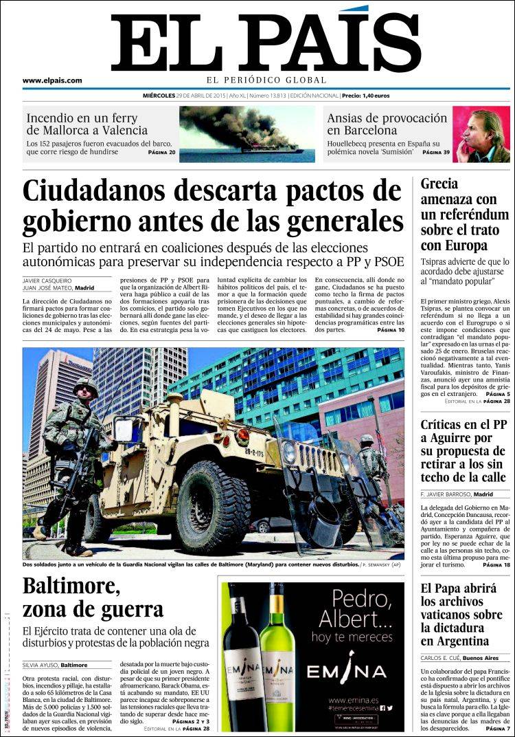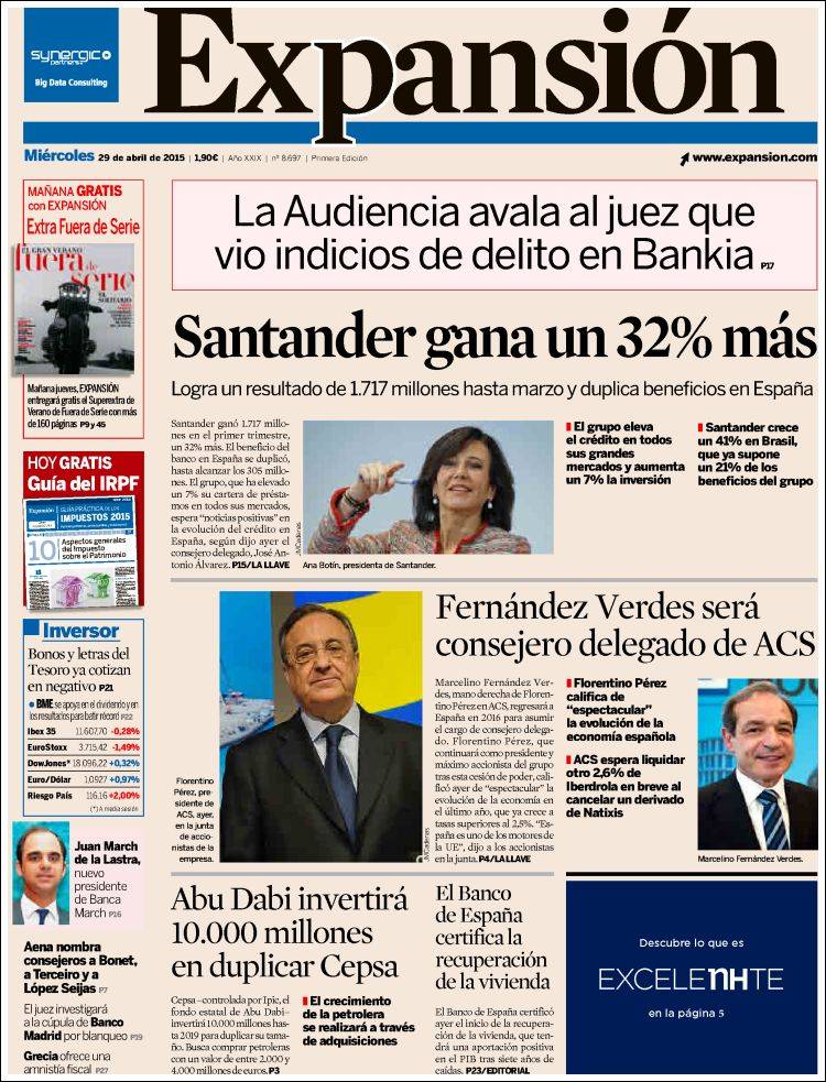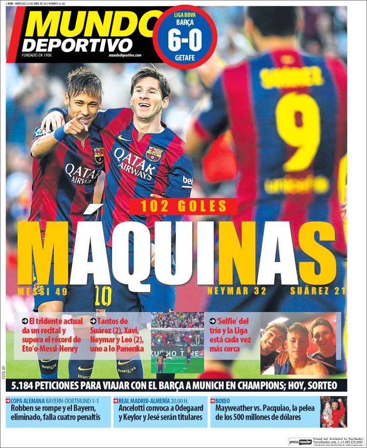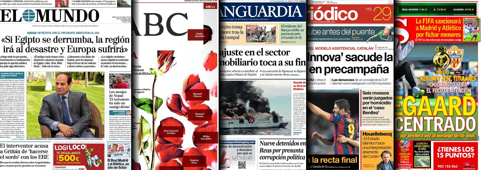Portadas de los diarios El Mundo, El País, ABC, La Razón, La Vanguardia, El Periódico, Cinco Días, El Economista, Expansión, Marca, As, Mundo Deportivo y Sport.