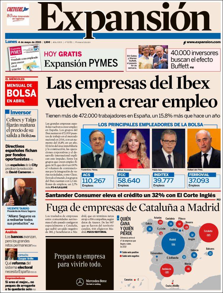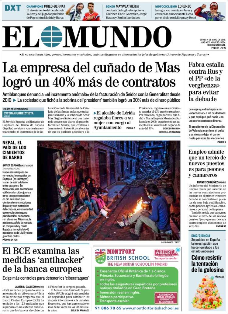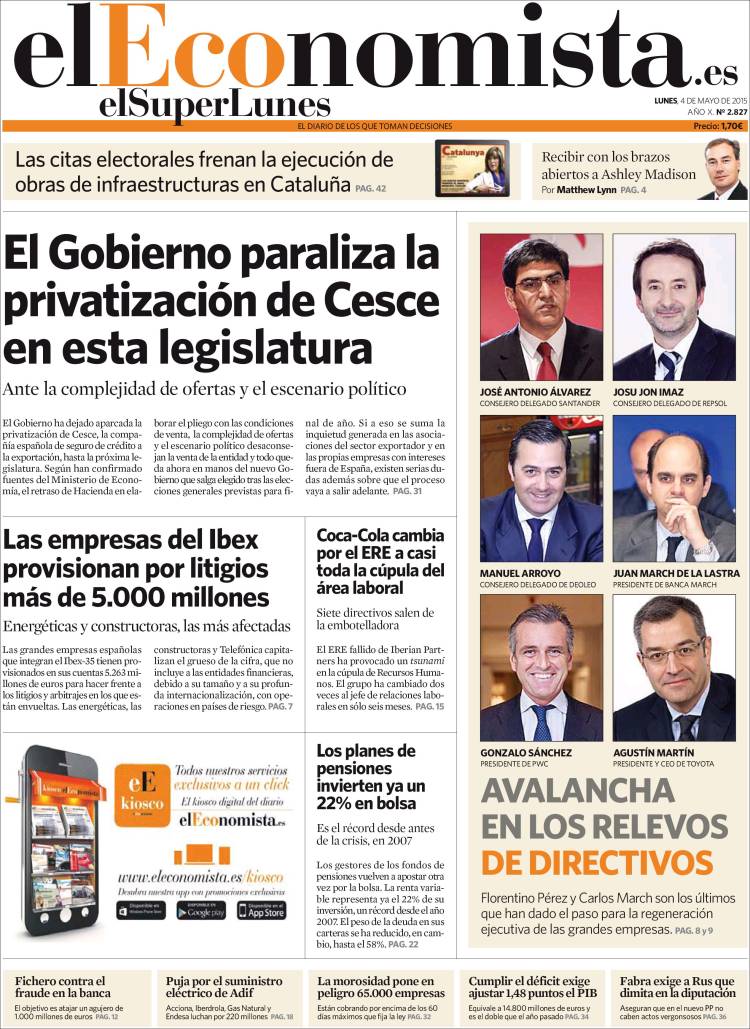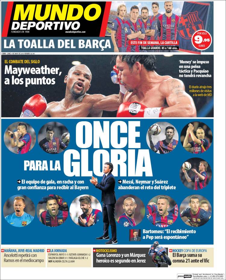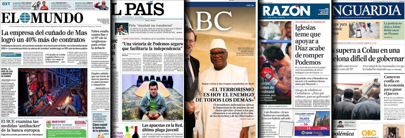 Portadas de los diarios El Mundo, El País, ABC, La Razón, La Vanguardia, El Periódico, Cinco Días, El Economista, Expansión, Marca, As, Mundo Deportivo y Sport.