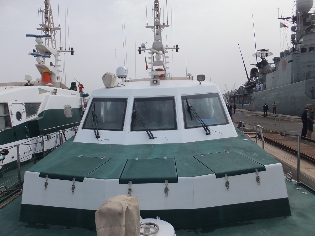 Vista de la cubierta de popa de la patrullera Río Duero. Al fondo a la derecha el Patrullero oceánico P-79 Vencedora de la Armada. Ambas embarcaciones, en el puerto de Dakar