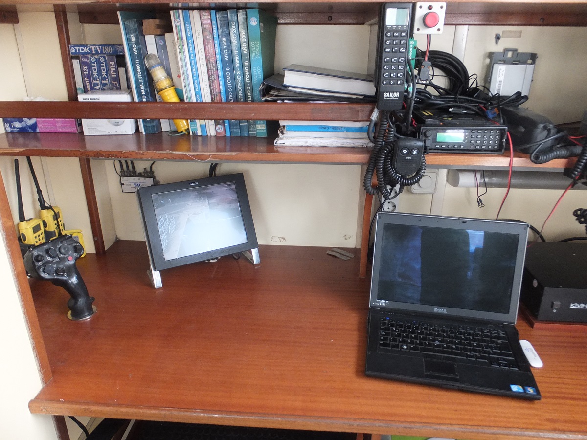 Cámara exterior de las patrulleras de la Guardia Civil y joystick para moverla de posición.
