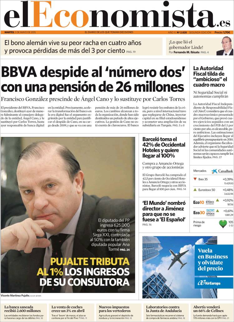 "BBVA despide al 'número dos' con una pensión de 26 millones"