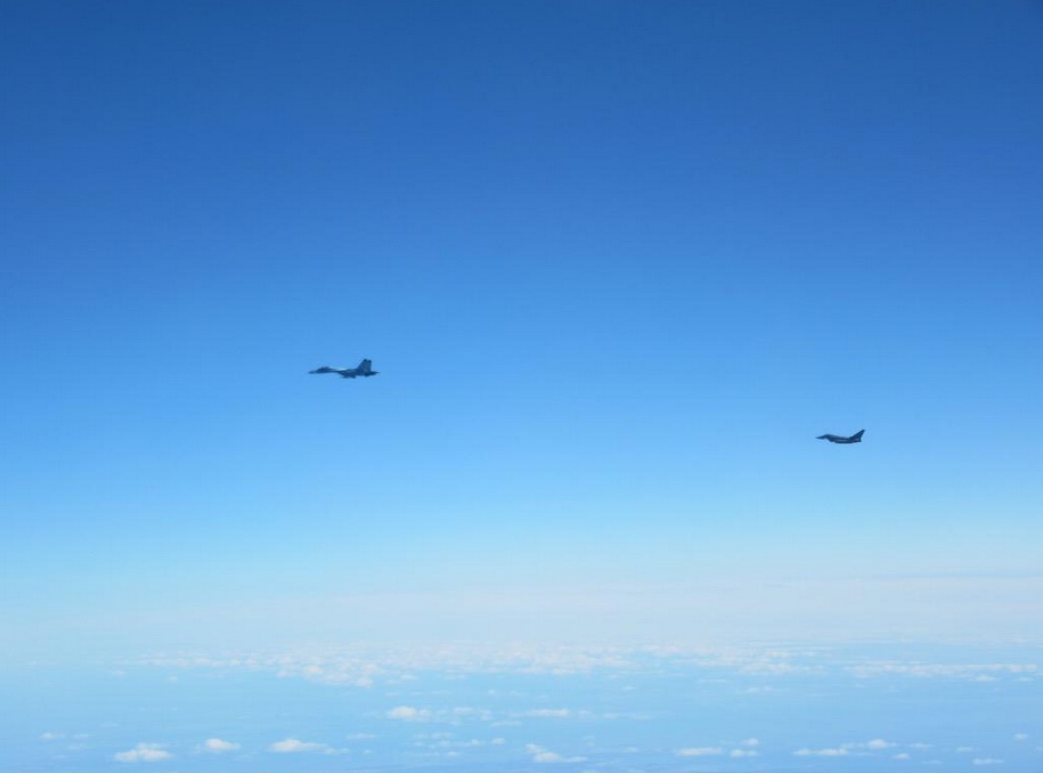 Los Eurofighter españoles interceptando un caza ruso Sukhoi 34.