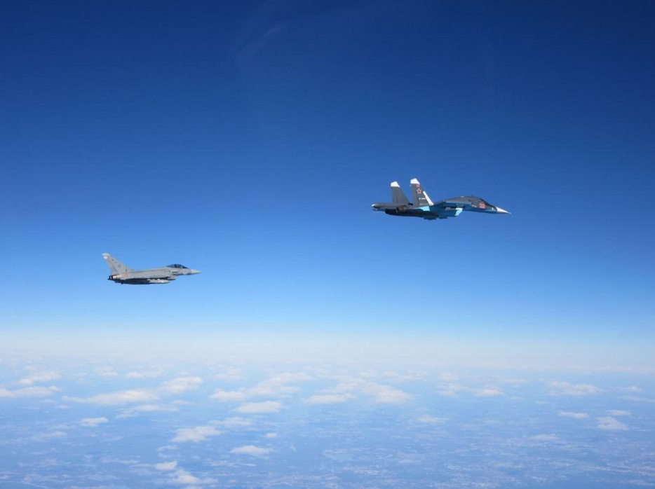 Los Eurofighter españoles interceptando un caza ruso en el espacio aéreo báltico.