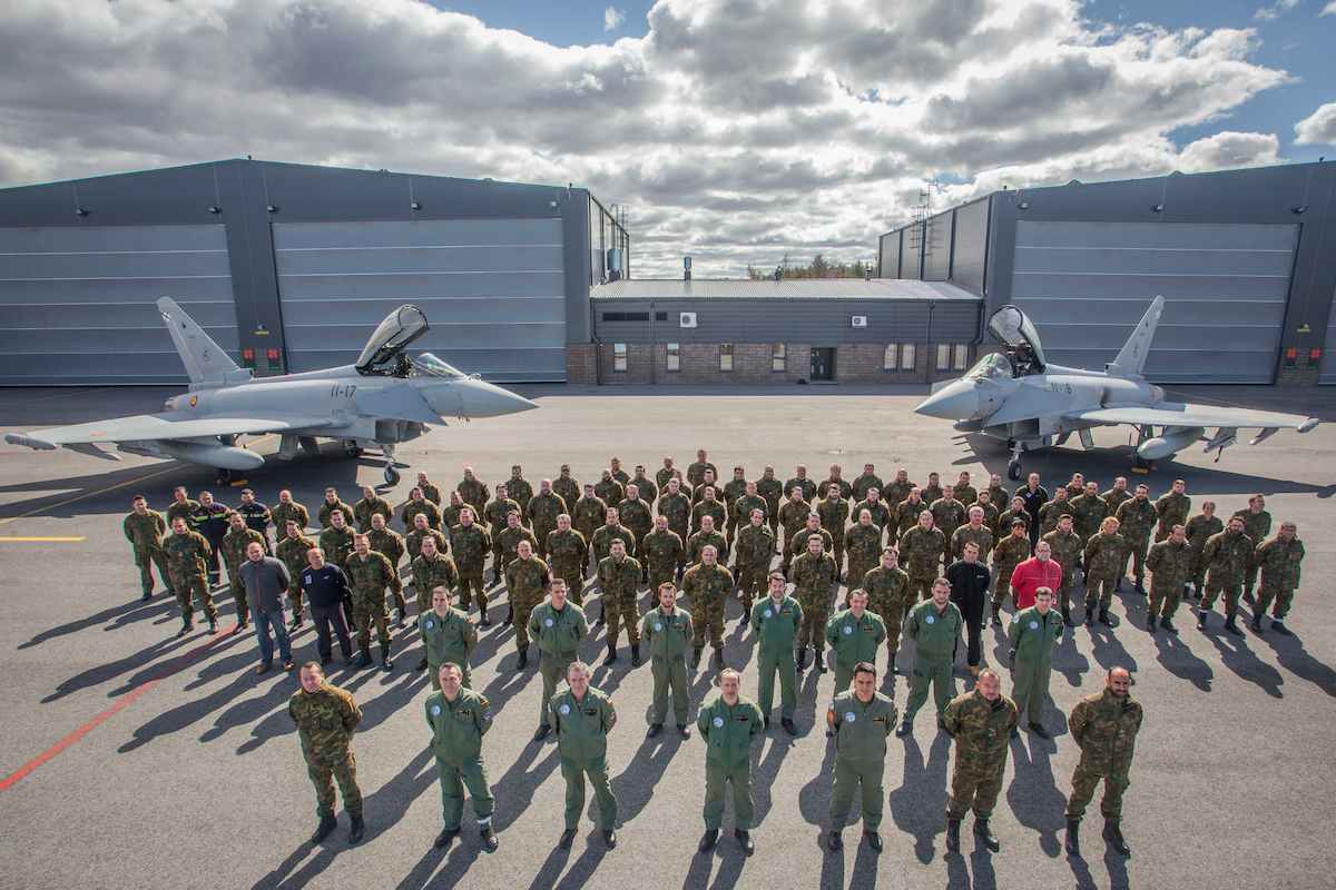 Foto de grupo del Destacamento Ámbar en la base aérea de Ämari, en Estonia.