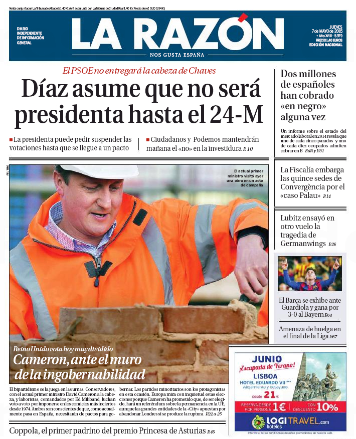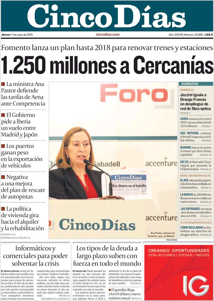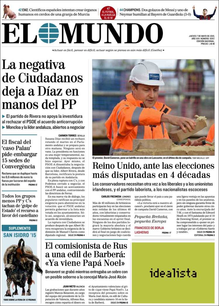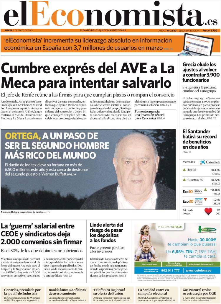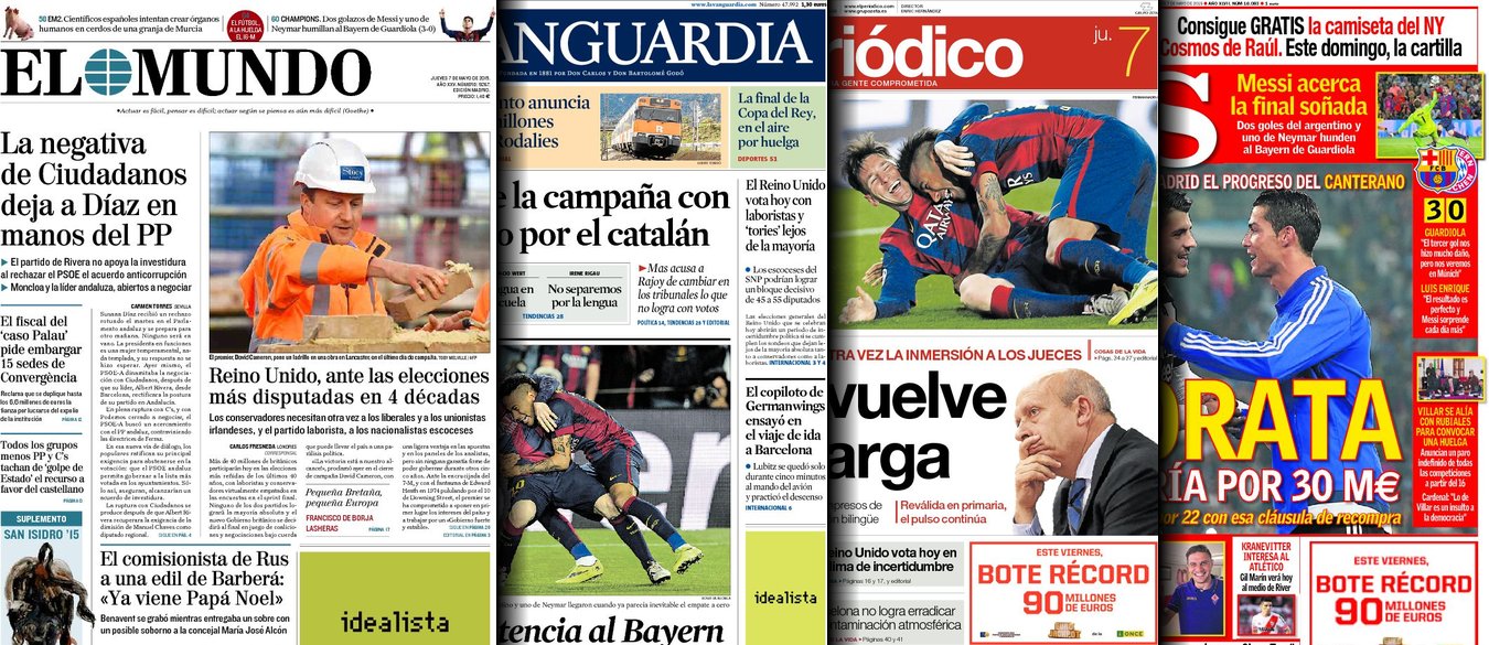 Portadas de los diarios El Mundo, El País, ABC, La Razón, La Vanguardia, El Periódico, Cinco Días, El Economista, Expansión, As, Mundo Deportivo y Sport.