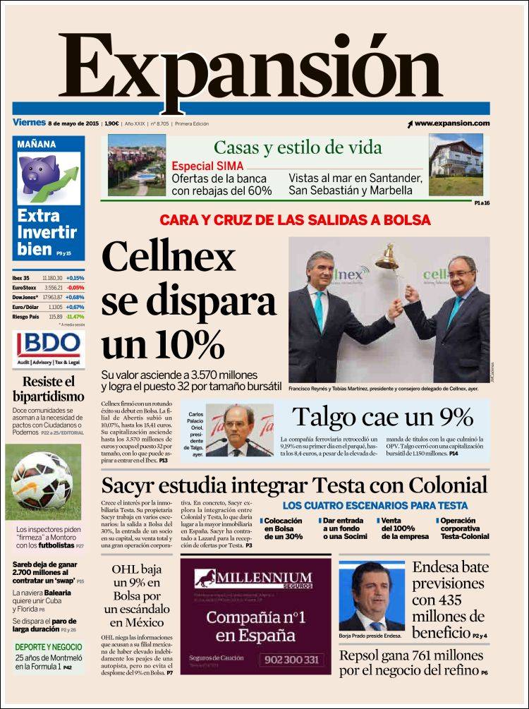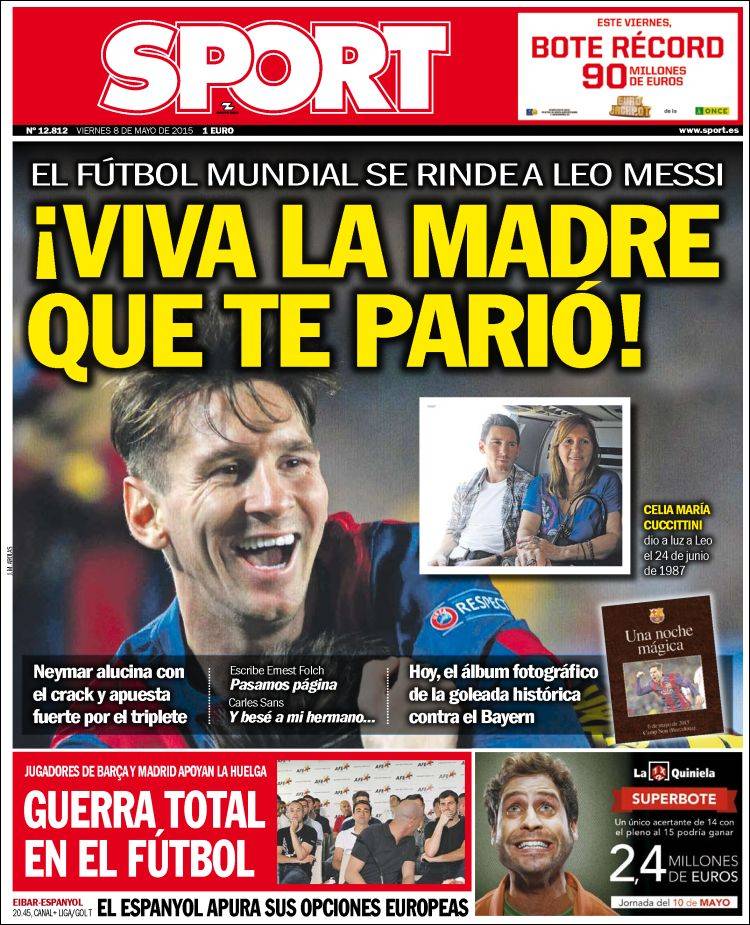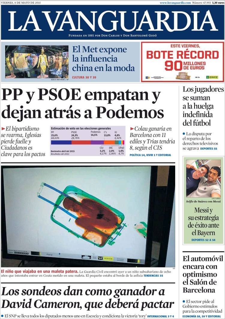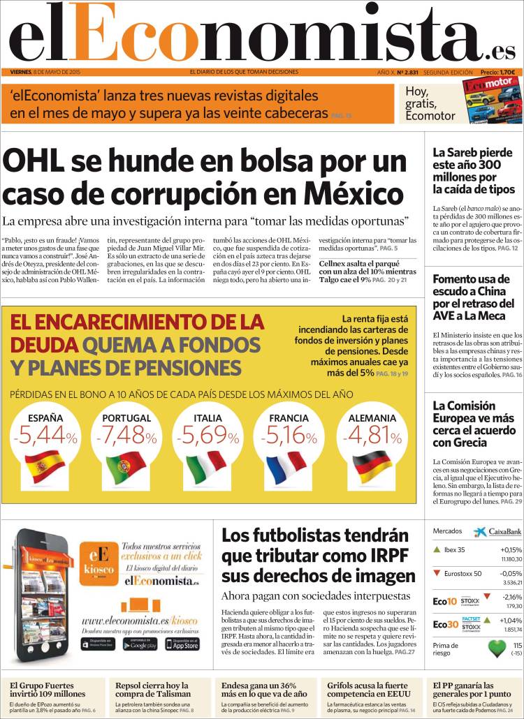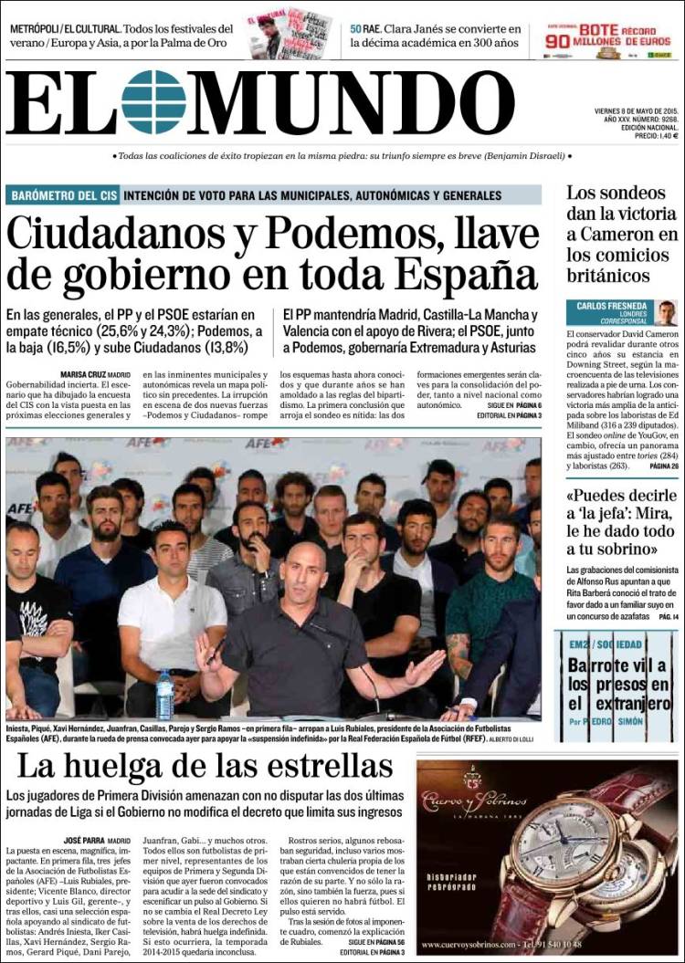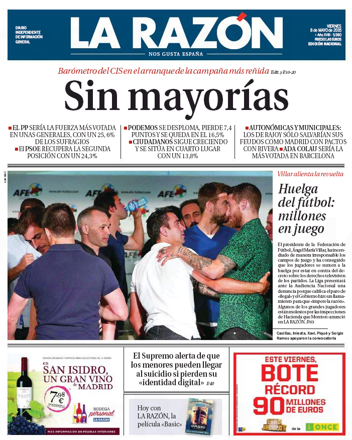 Portadas de los diarios El Mundo, El País, ABC, La Razón, La Vanguardia, El Periódico, Cinco Días, El Economista, Expansión, Marca, As, Mundo Deportivo y Sport.