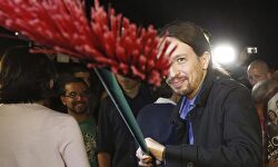 En su tercer mitin de campaña, el líder de Podemos comenzó pidiendo "valentía" : "No hay fuerza que prevalezca contra quien es leal y valiente"
