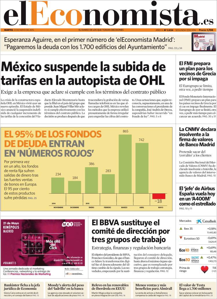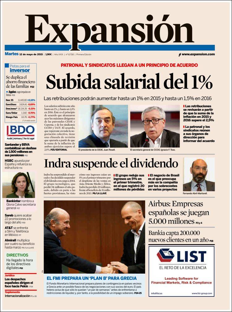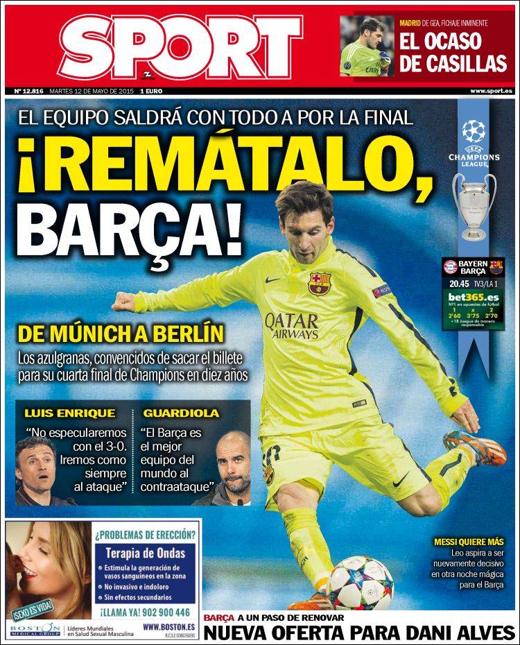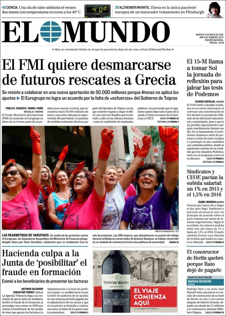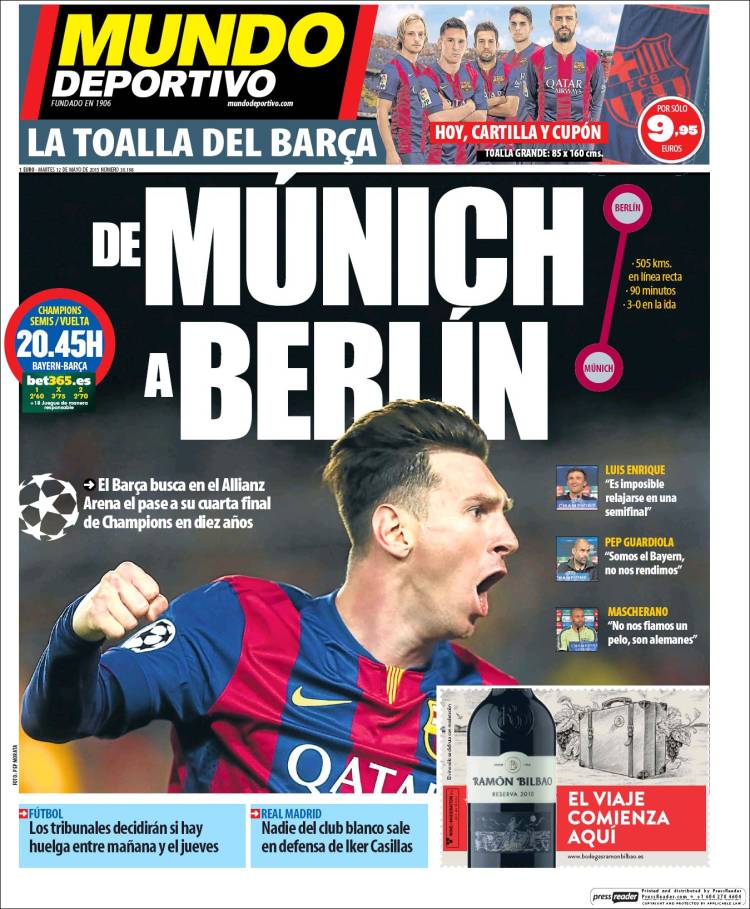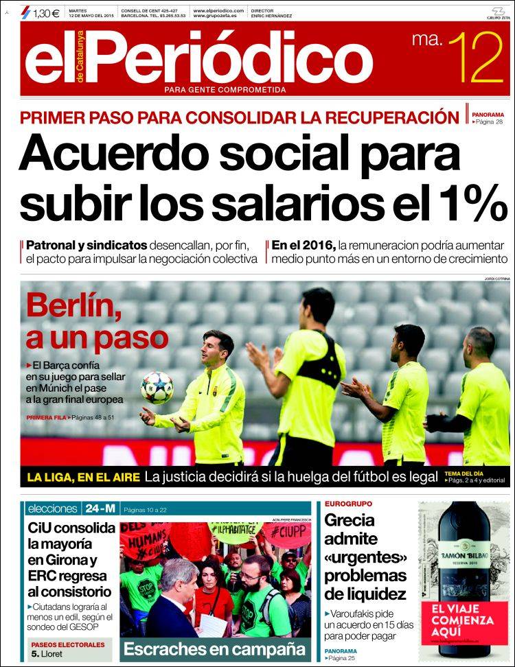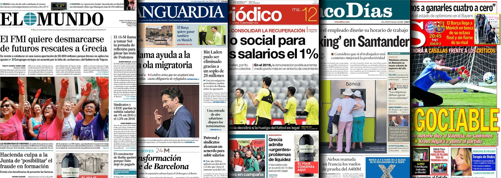 Portadas de los diarios El Mundo, El País, ABC, La Razón, La Vanguardia, El Periódico, Cinco Días, El Economista, Expansión, Marca, As, Mundo Deportivo y Sport.