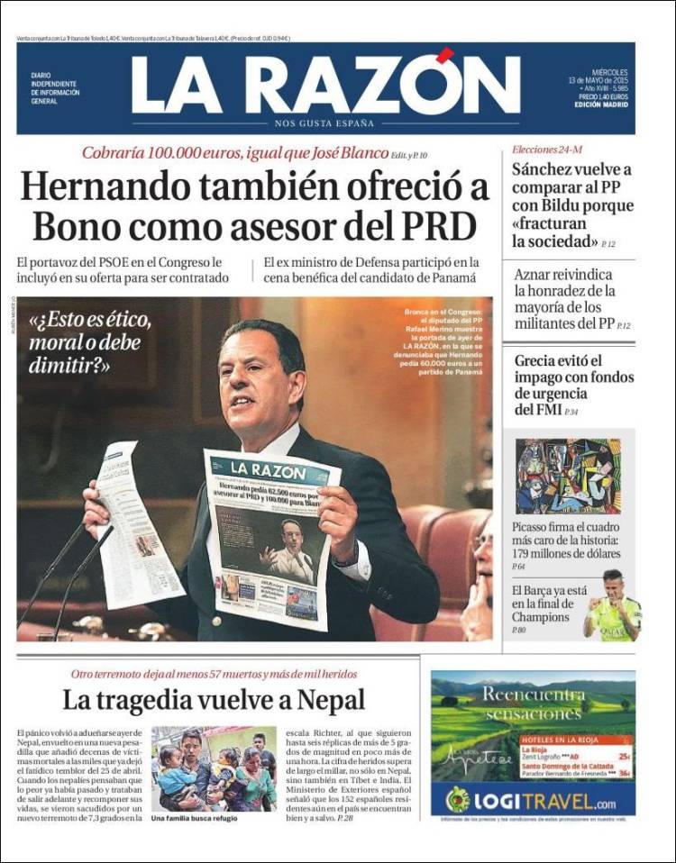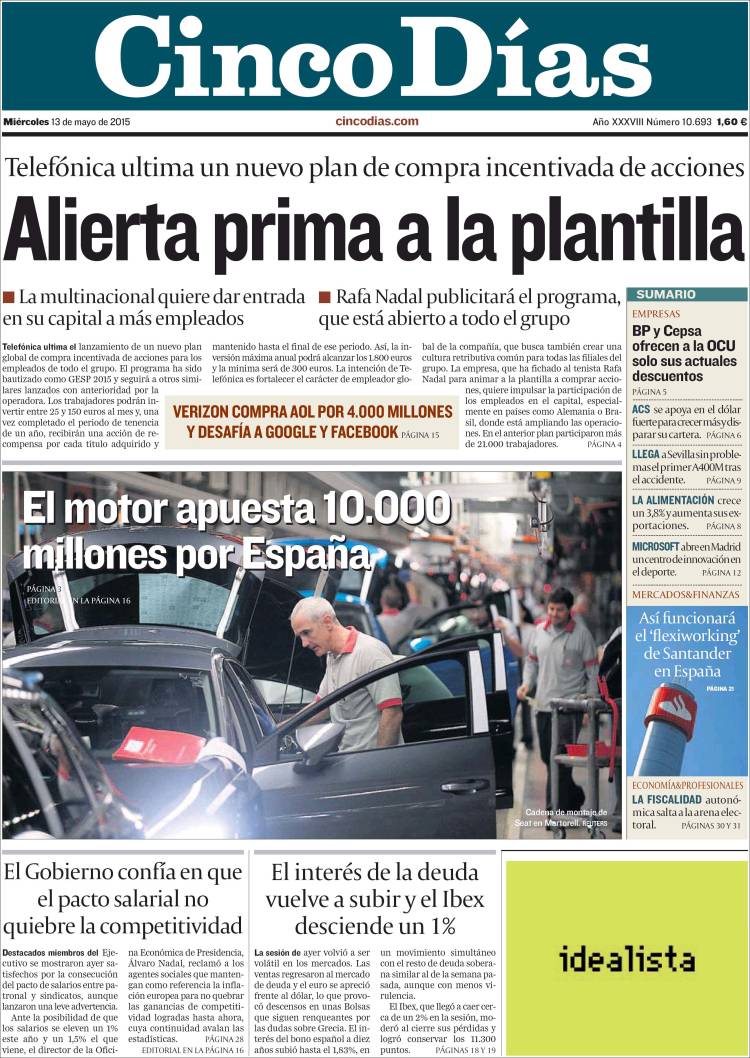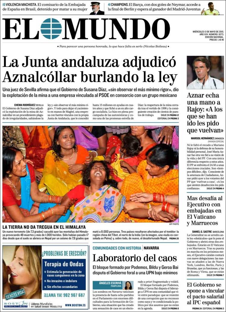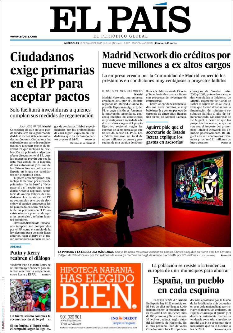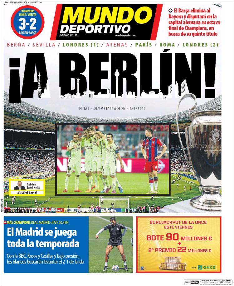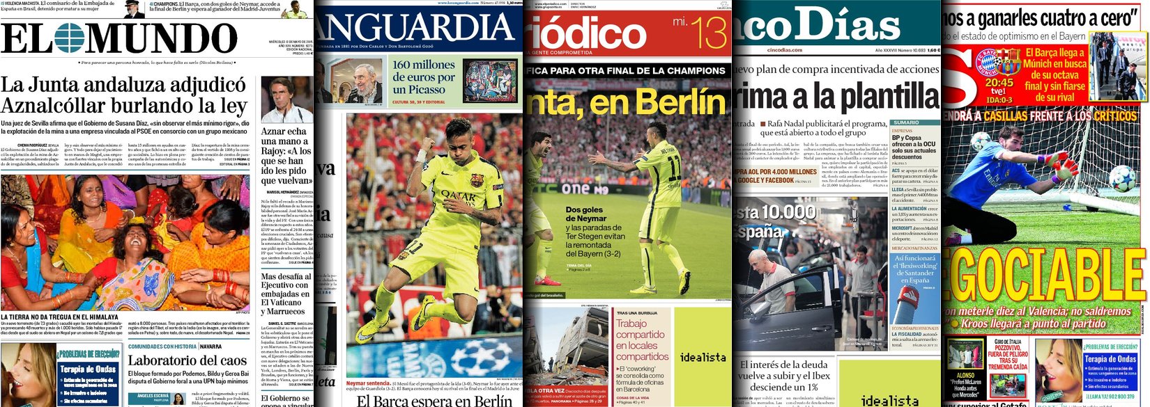 Portadas de los diarios El Mundo, El País, ABC, La Razón, La Vanguardia, El Periódico, Cinco Días, El Economista, Expansión, Marca, As, Mundo Deportivo y Sport.