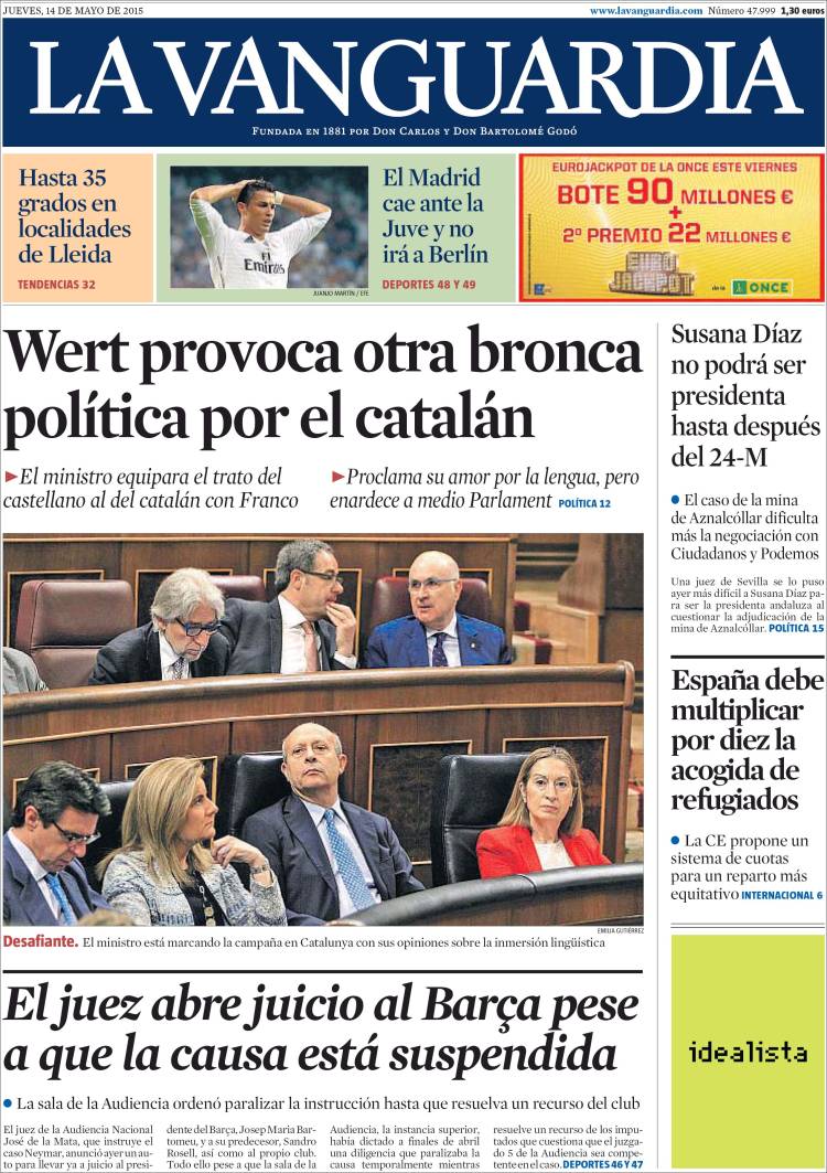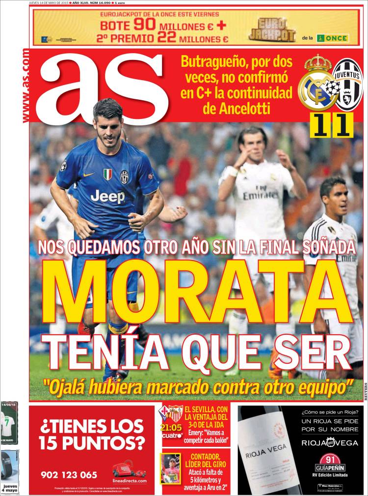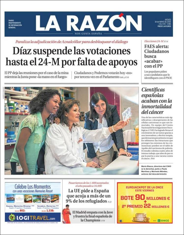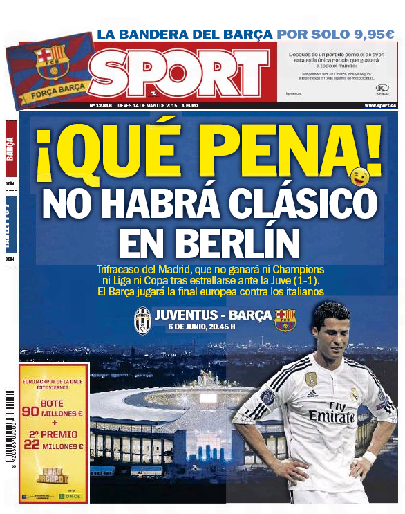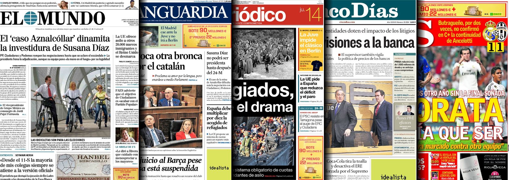 Portadas de los diarios El Mundo, El País, ABC, La Razón, La Vanguardia, El Periódico, Cinco Días, El Economista, Expansión, Marca, As, Mundo Deportivo y Sport.