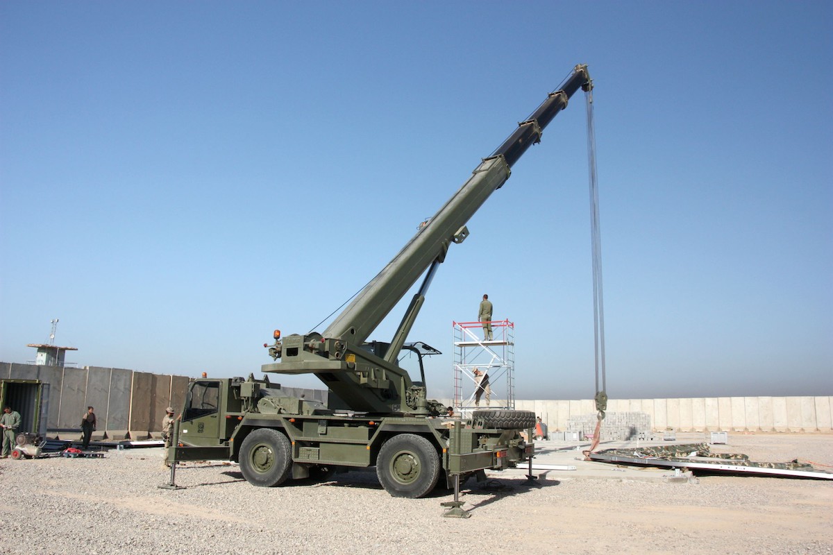 Grúa recientemente recibida en la Base Gran Capitán, en Irak.