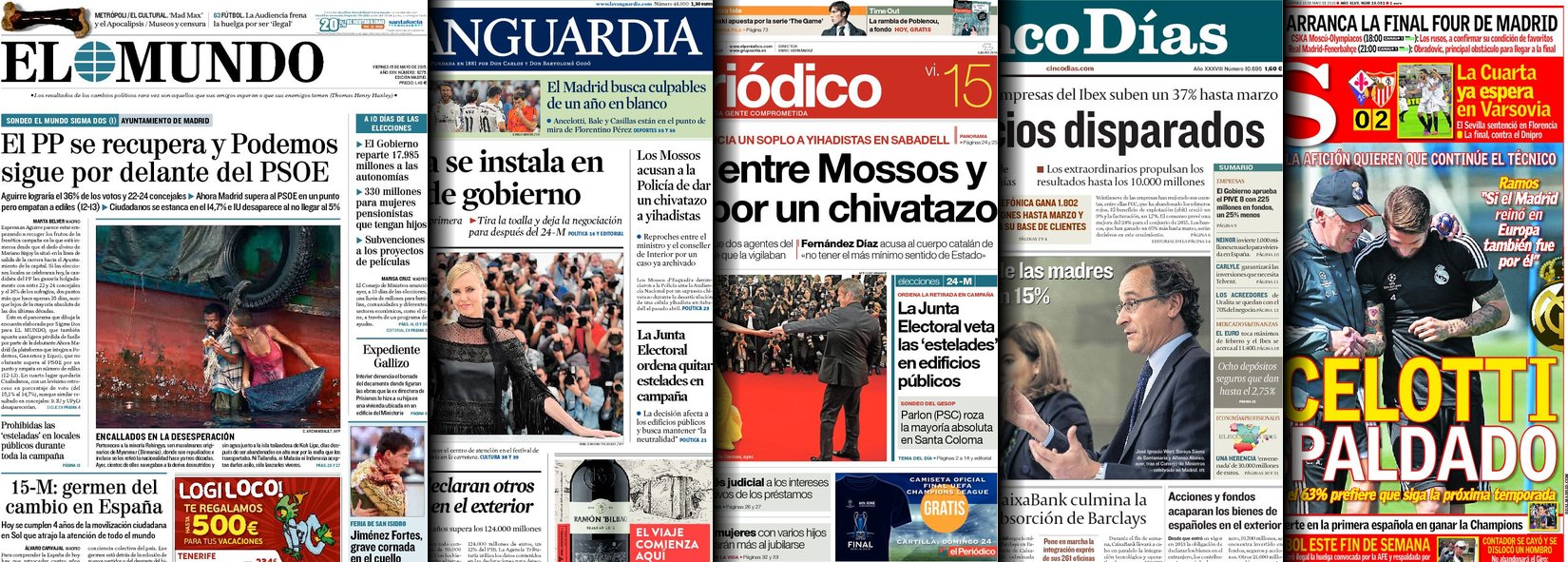 Portadas de los diarios ABC, As, Cinco Días, El Periódico y La Vanguardia.
