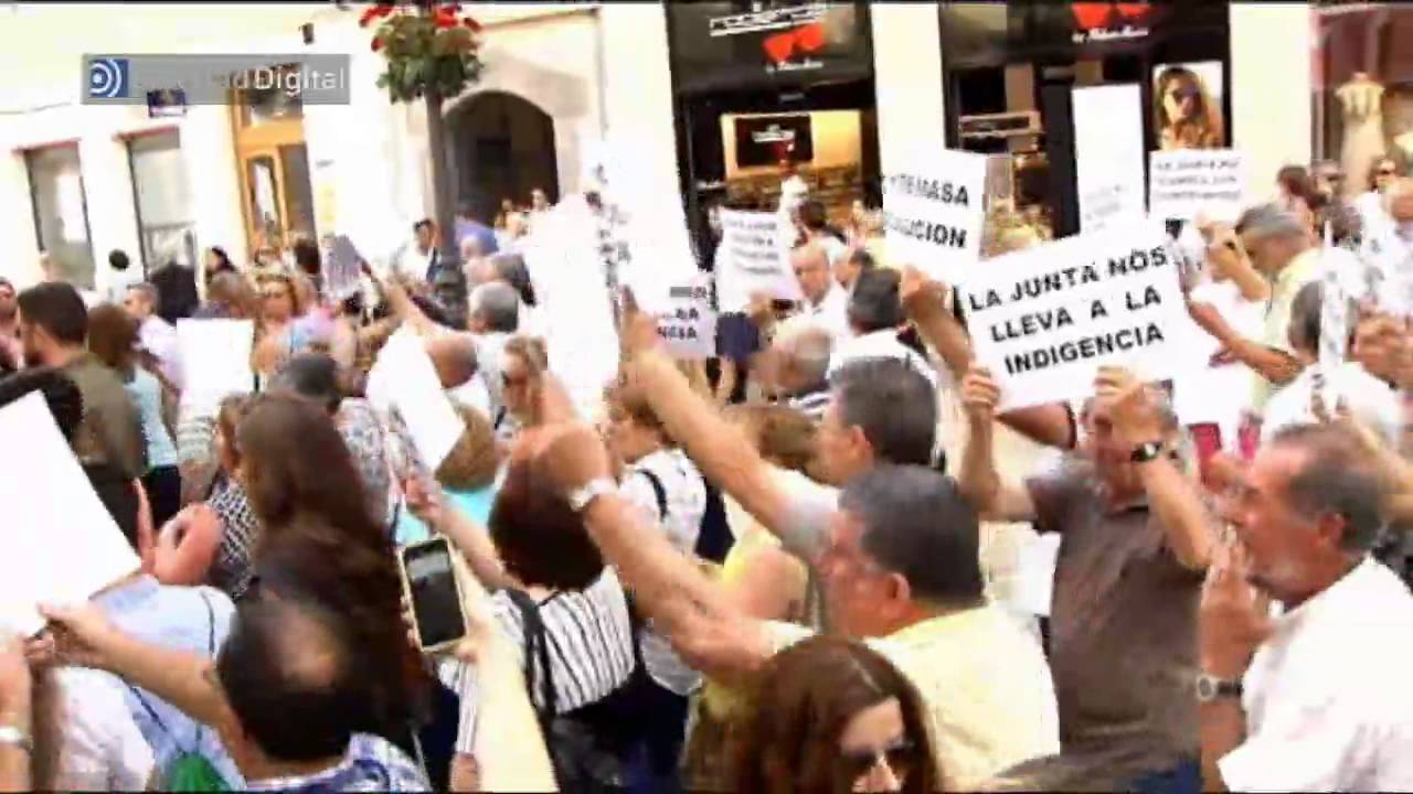 Medio centenar de prejubilados de la empresa Hitemasa se quejaban porque la Junta de Andalucía les debe entre 4 y 6,5 millones de euros para pagar su prejubilación que les adeudan desde 2004.