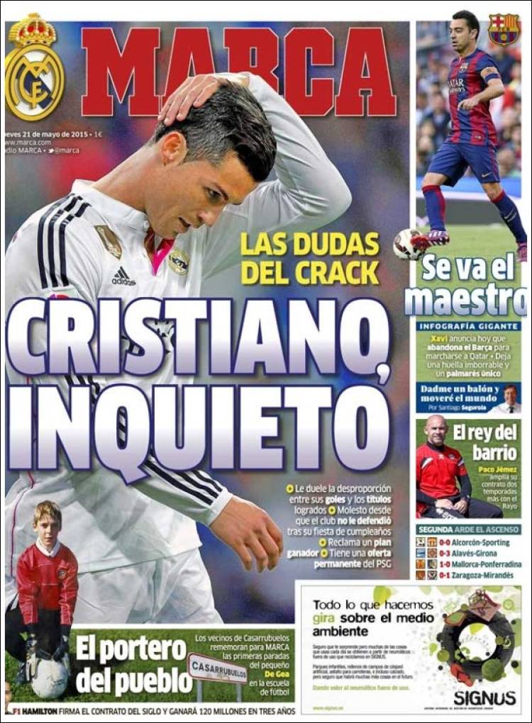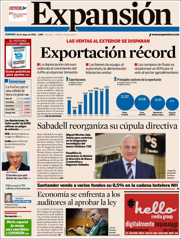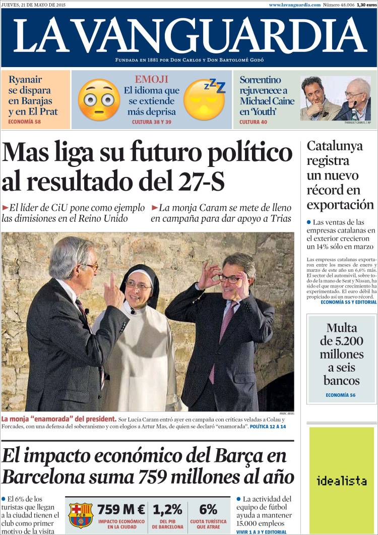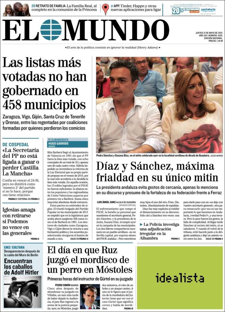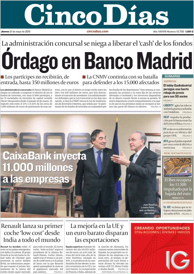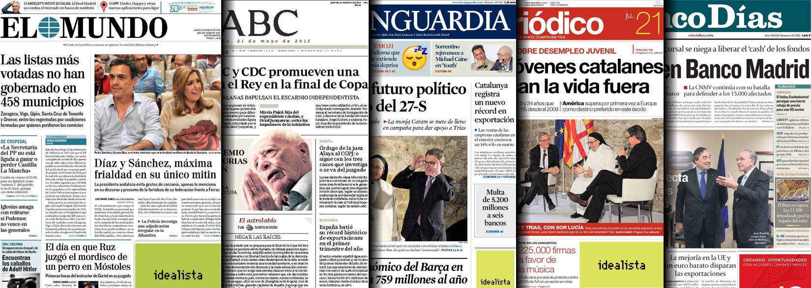Portadas de los diarios El Mundo, El País, ABC, La Razón, La Vanguardia, El Periódico, Cinco Días, El Economista, Expansión, Marca, As, Mundo Deportivo y Sport.
