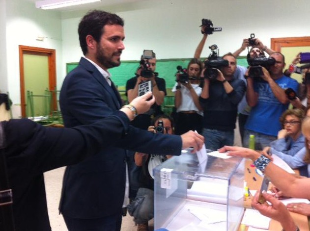Alberto Garzón votó en Málaga y fue uno de los votantes más madrugadores de su colegio electoral.