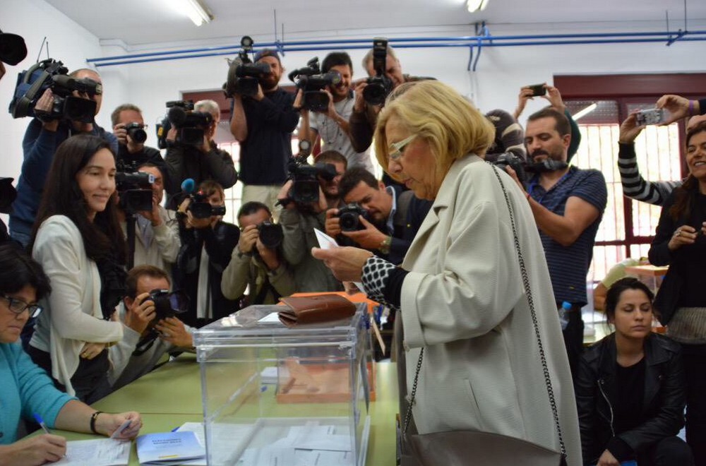 Manuela Carmena, candidata de Ahora Madrid, también quiso acudir a primera hora de la mañana.