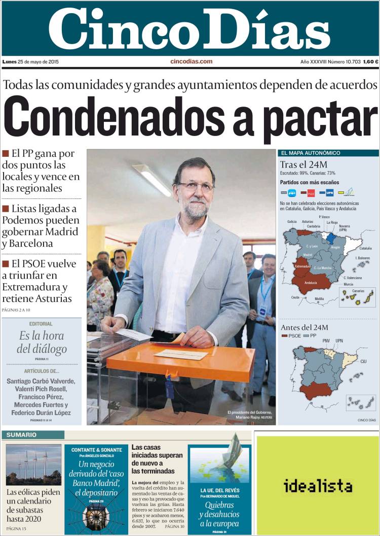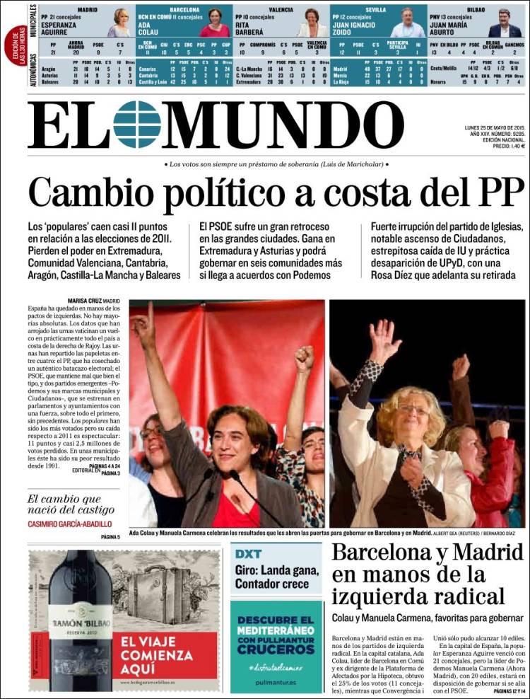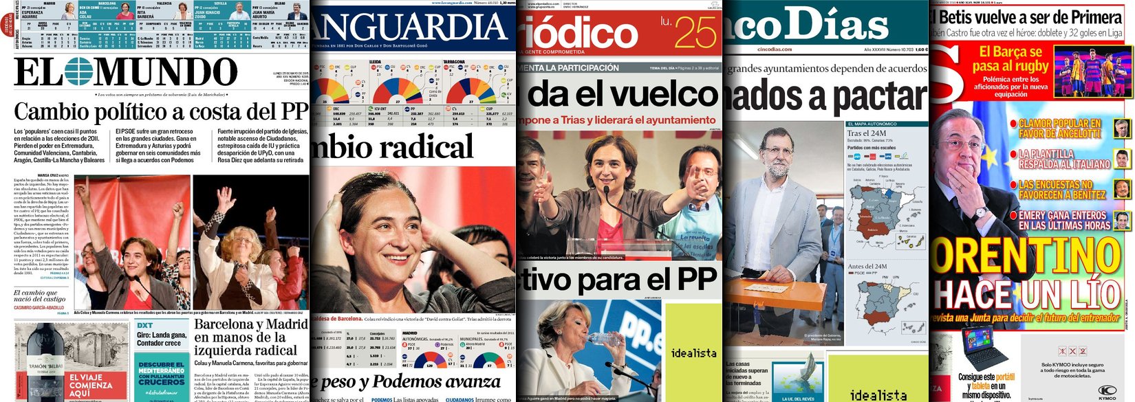 Portadas de los diarios El Mundo, El País, ABC, La Razón, La Vanguardia, El Periódico, Cinco Días, El Economista, Expansión, Marca, As, Mundo Deportivo y Sport.