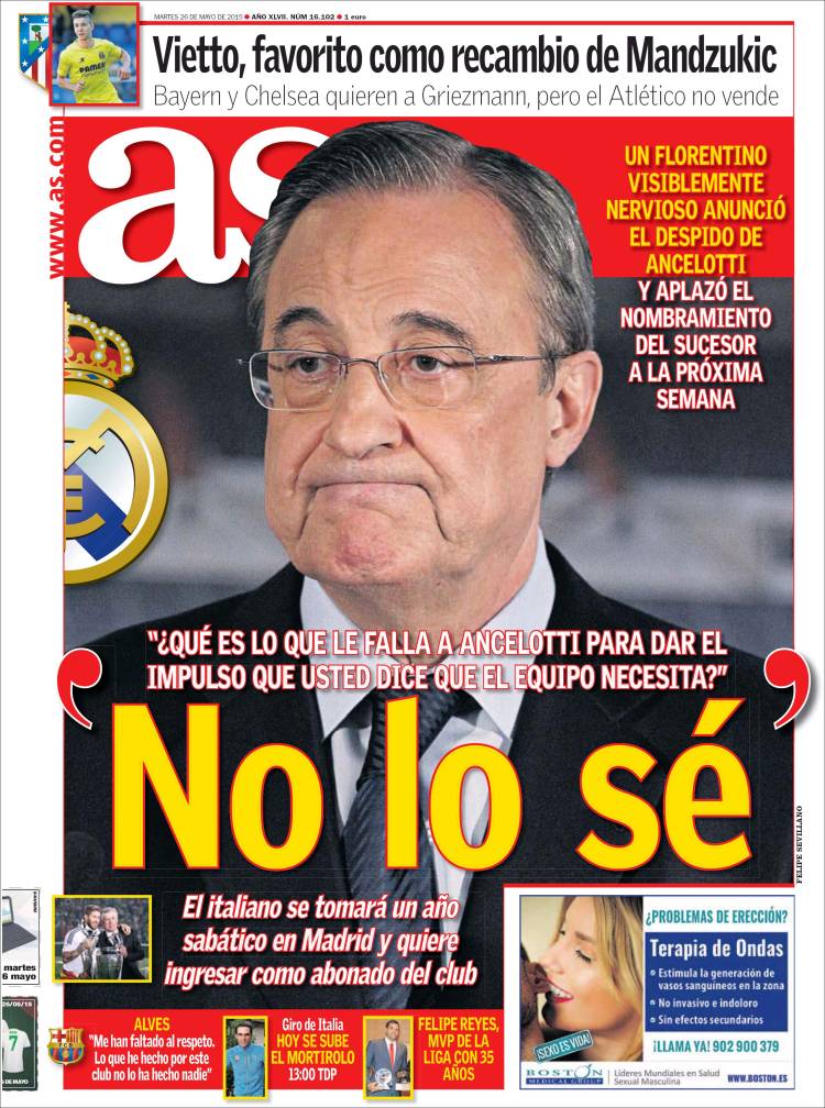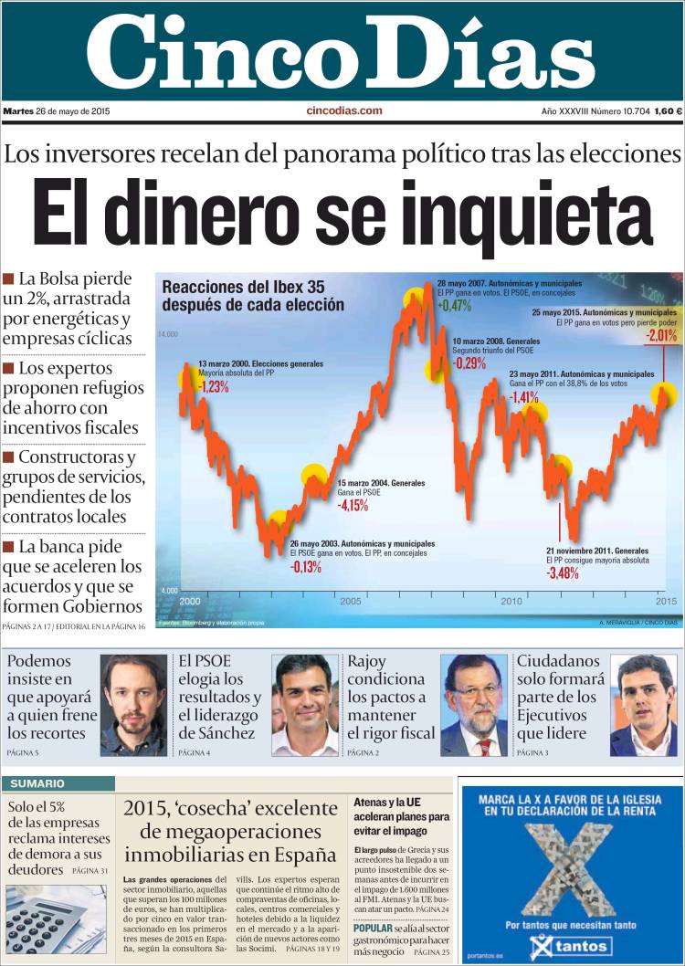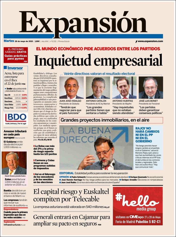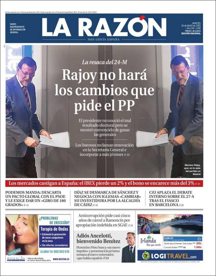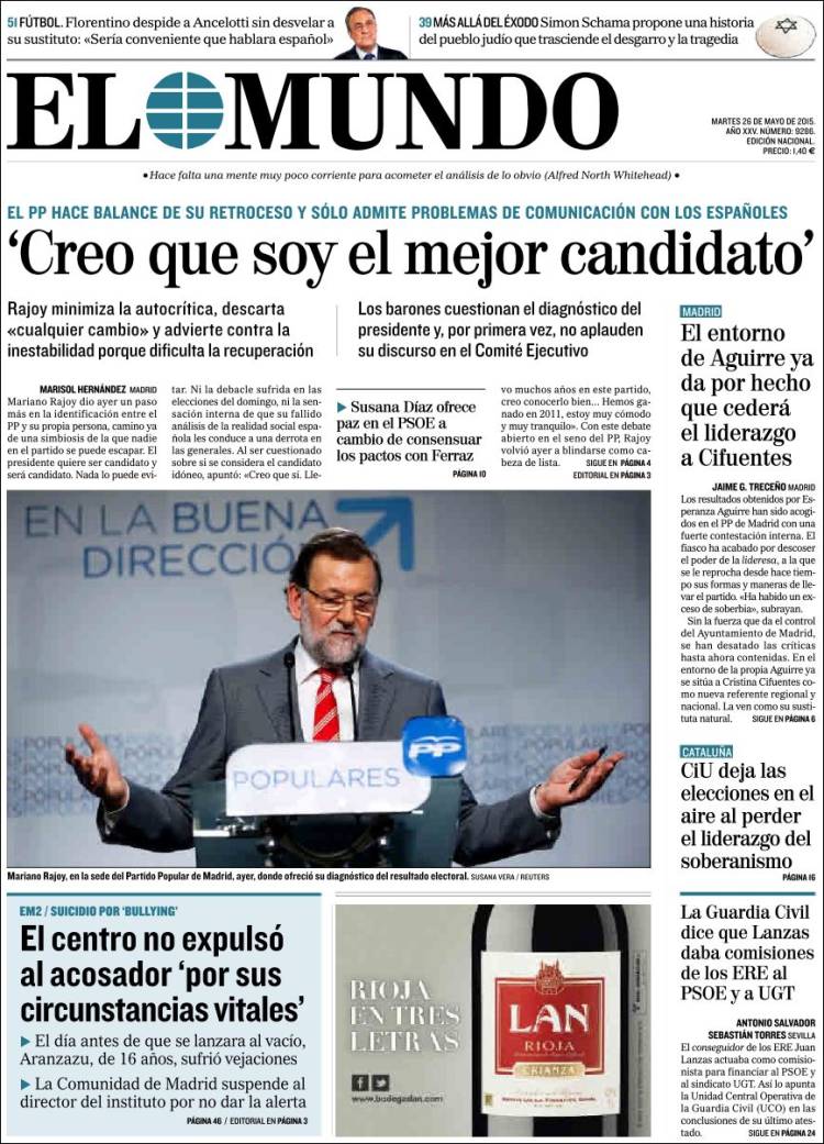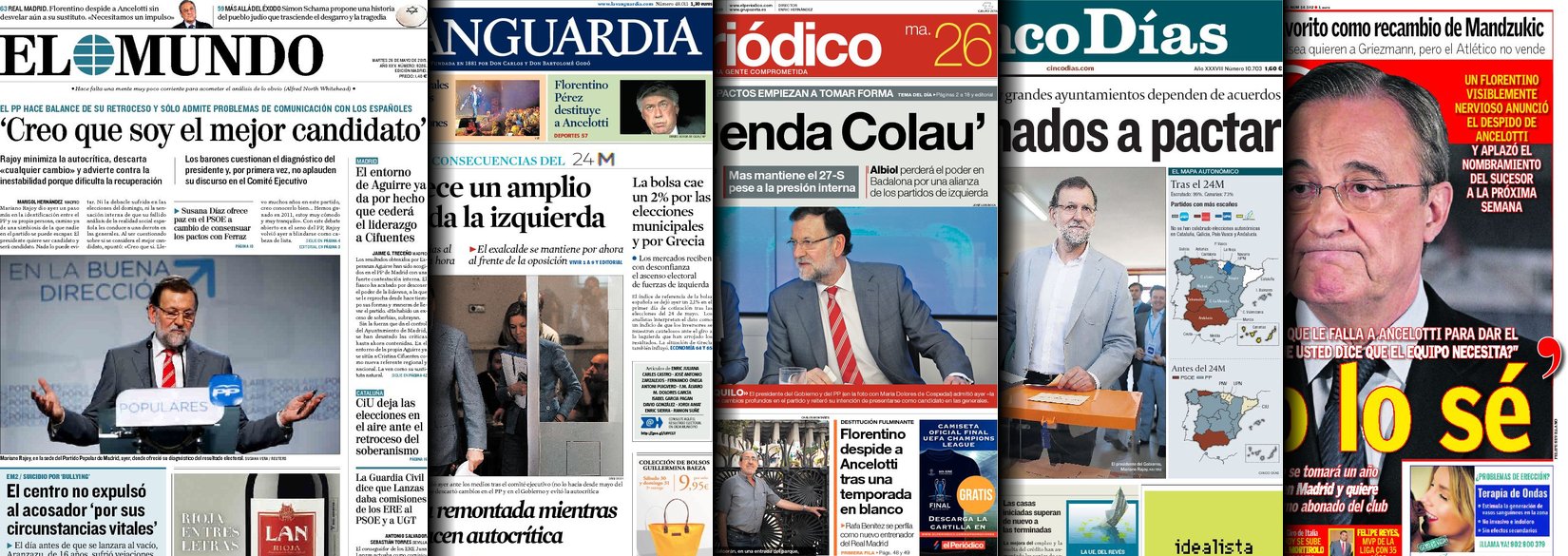 Portadas de los diarios El Mundo, El País, ABC, La Razón, La Vanguardia, El Periódico, Cinco Días, El Economista, Expansión, Marca, As, Mundo Deportivo y Sport.