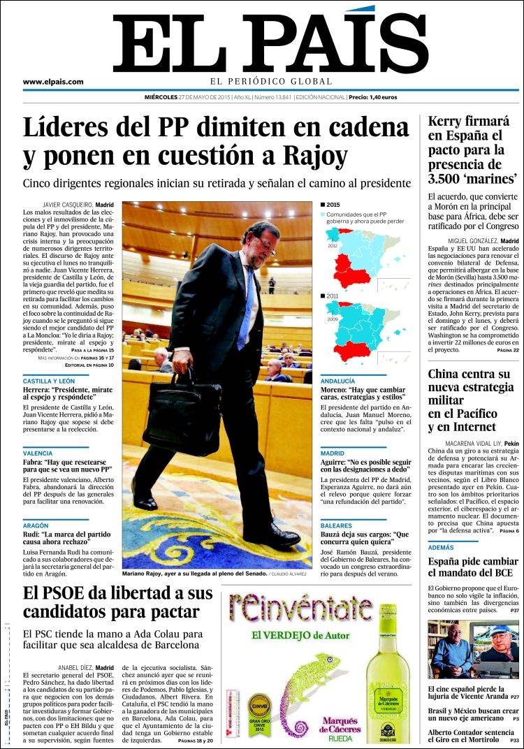 "Líderes del PP dimiten en cadena y ponen en cuestión a Rajoy"
