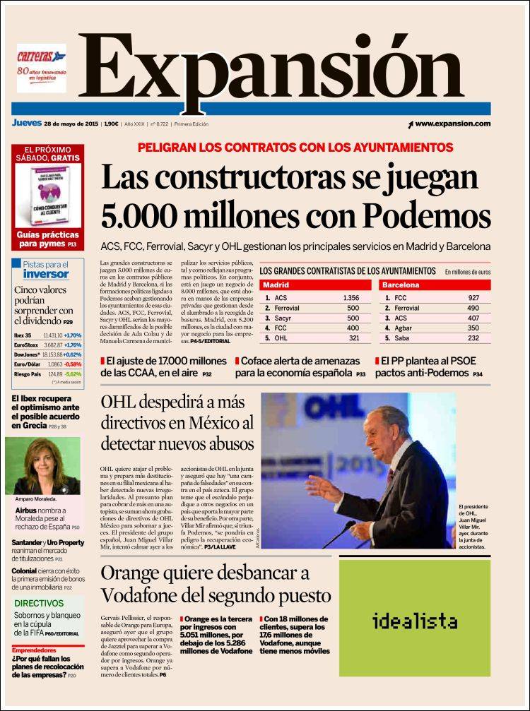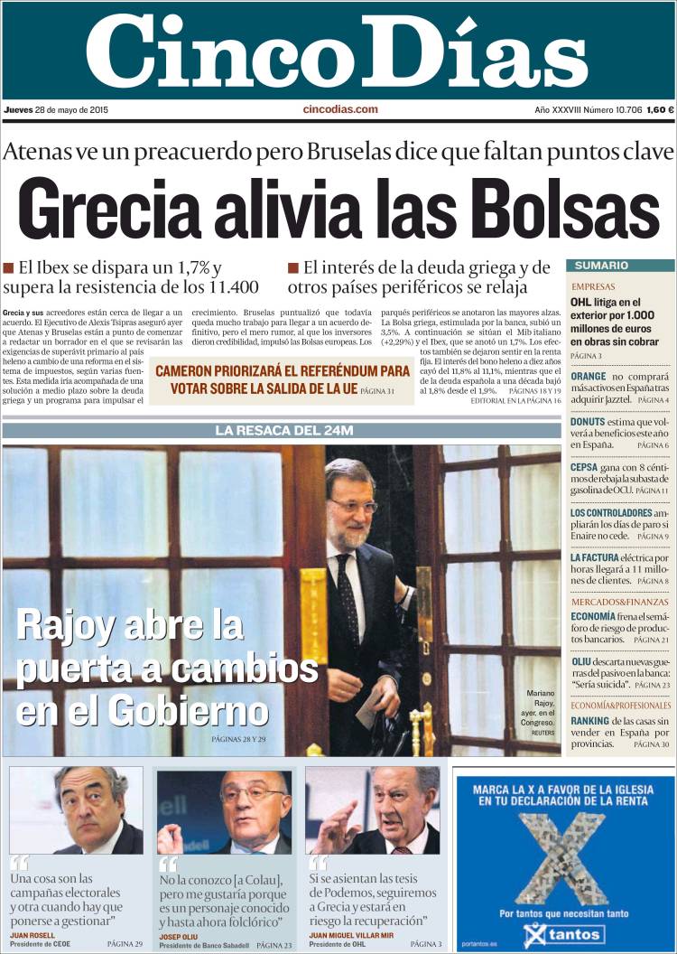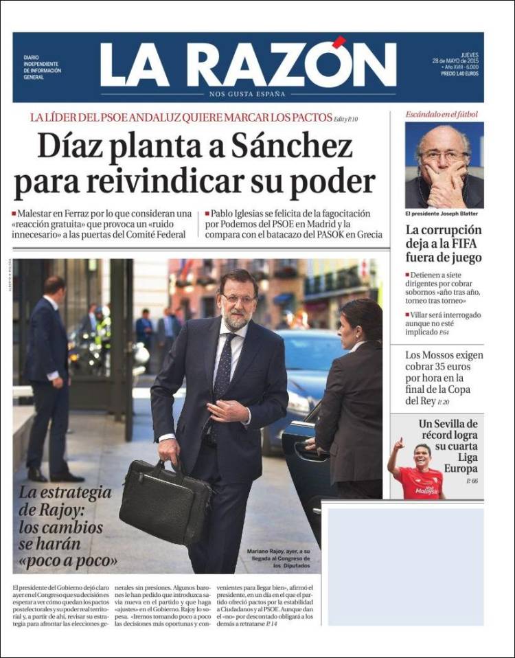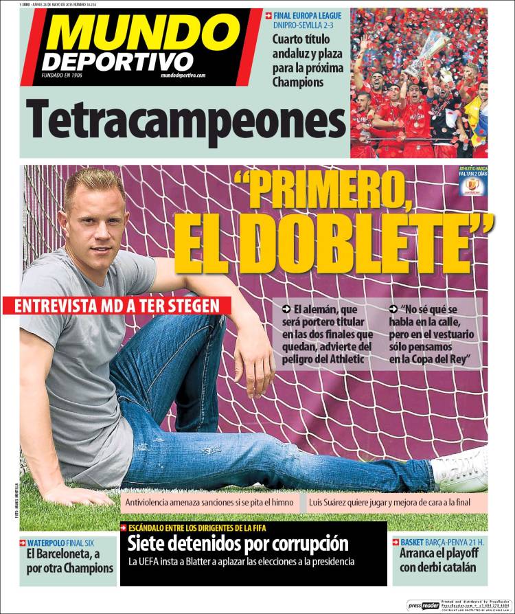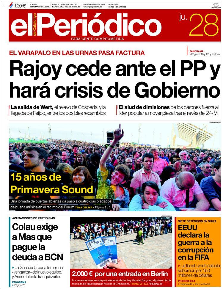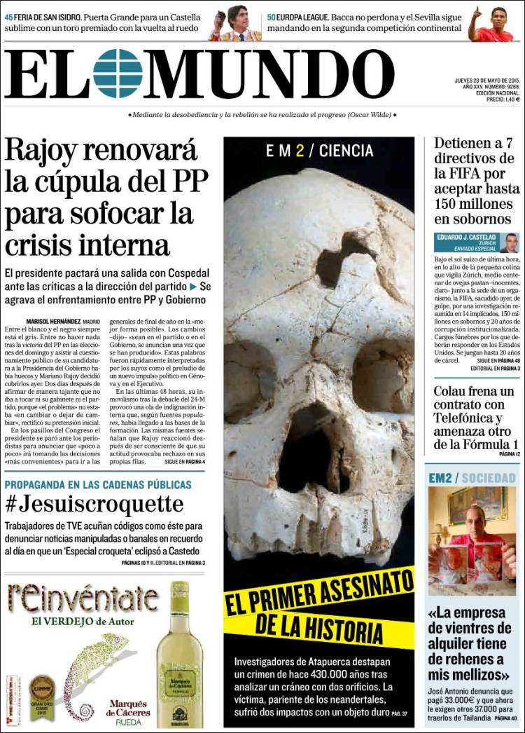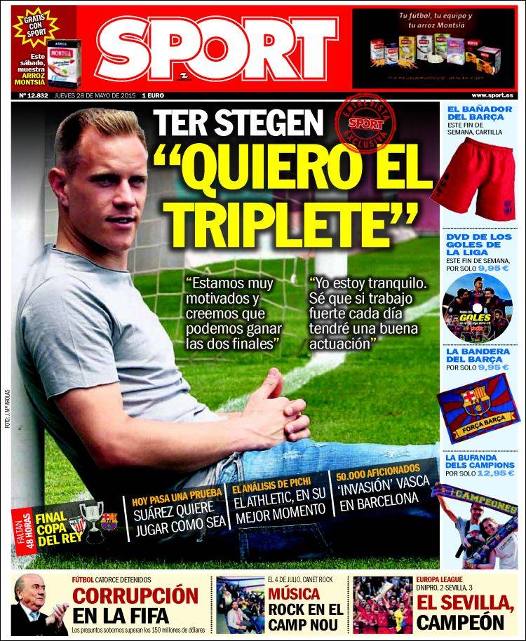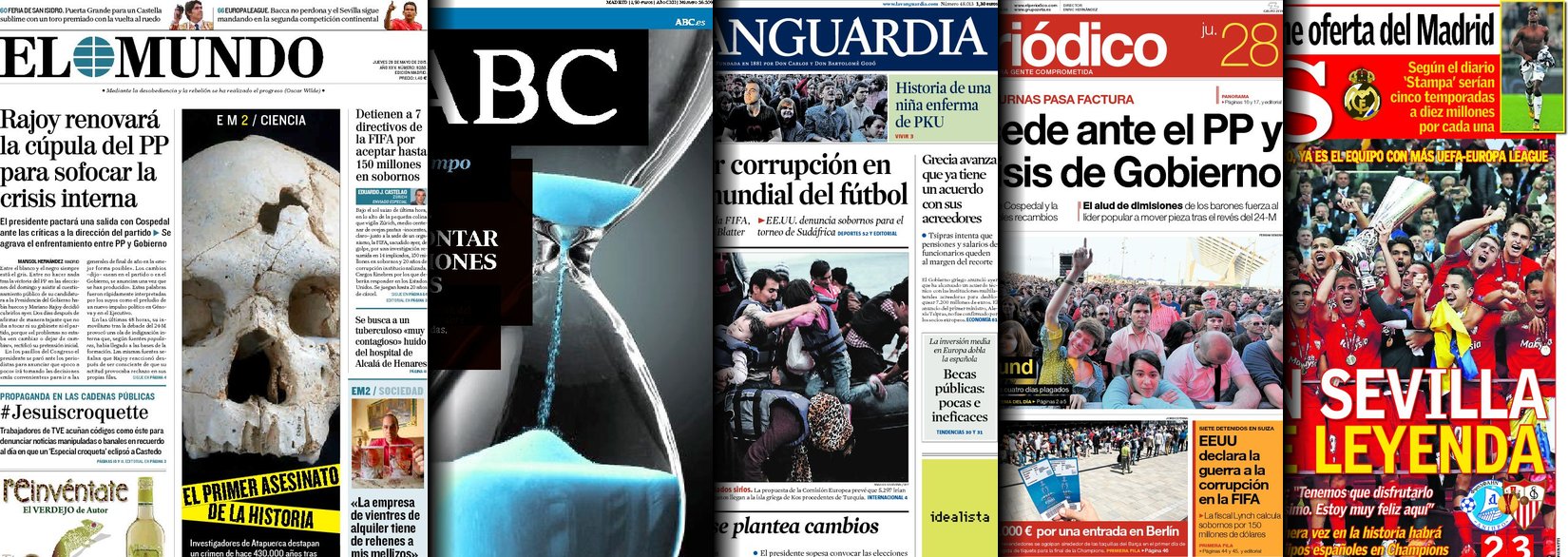 Portadas de los diarios El Mundo, El País, ABC, La Razón, La Vanguardia, El Periódico, Cinco Días, Expansión, Marca, As, Mundo Deportivo y Sport.