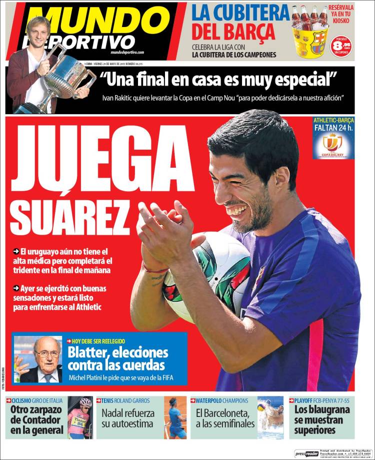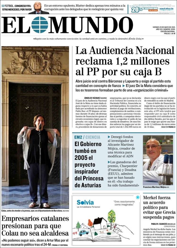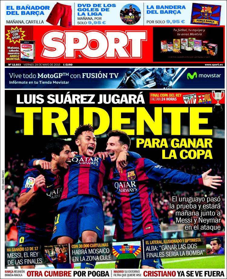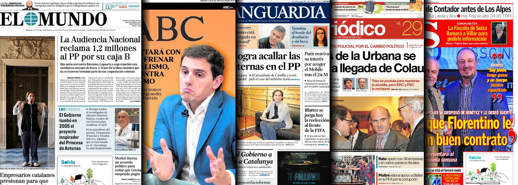 Portadas de los diarios El Mundo, El País, ABC, La Razón, La Vanguardia, El Periódico, Cinco Días, El Economista, Expansión, Marca, As, Mundo Deportivo y Sport.