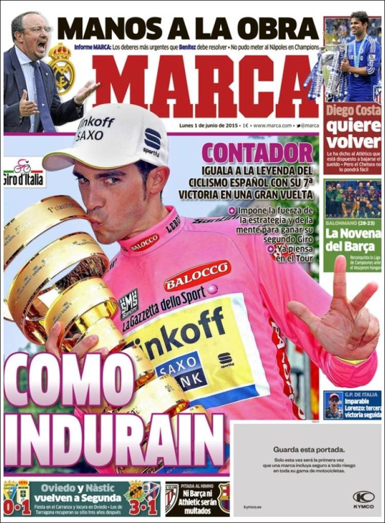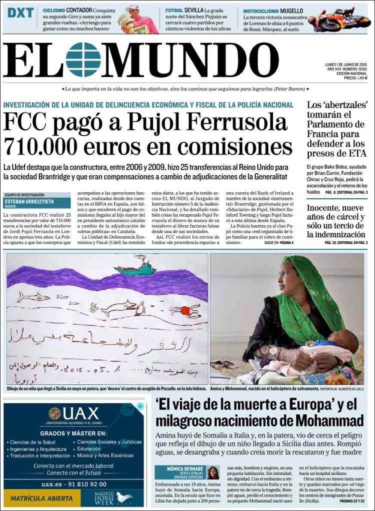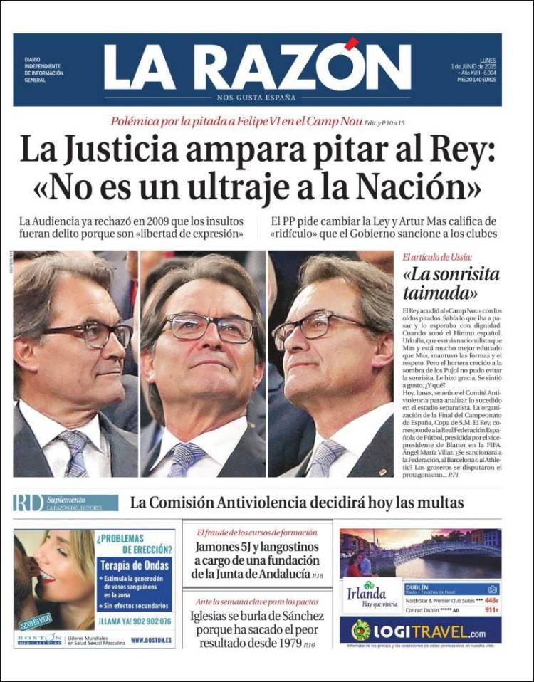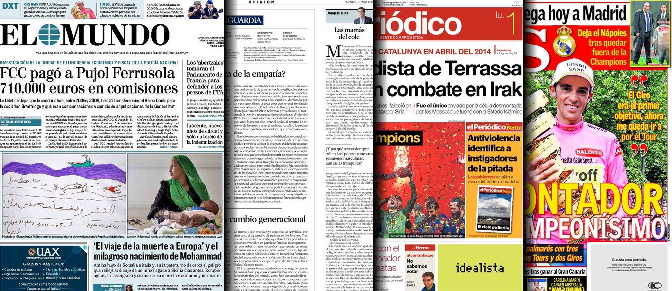Portadas de los diarios El Mundo, El País, ABC, La Razón, La Vanguardia, El Periódico, Cinco Días, El Economista, Expansión, Marca, As, Mundo Deportivo y Sport.