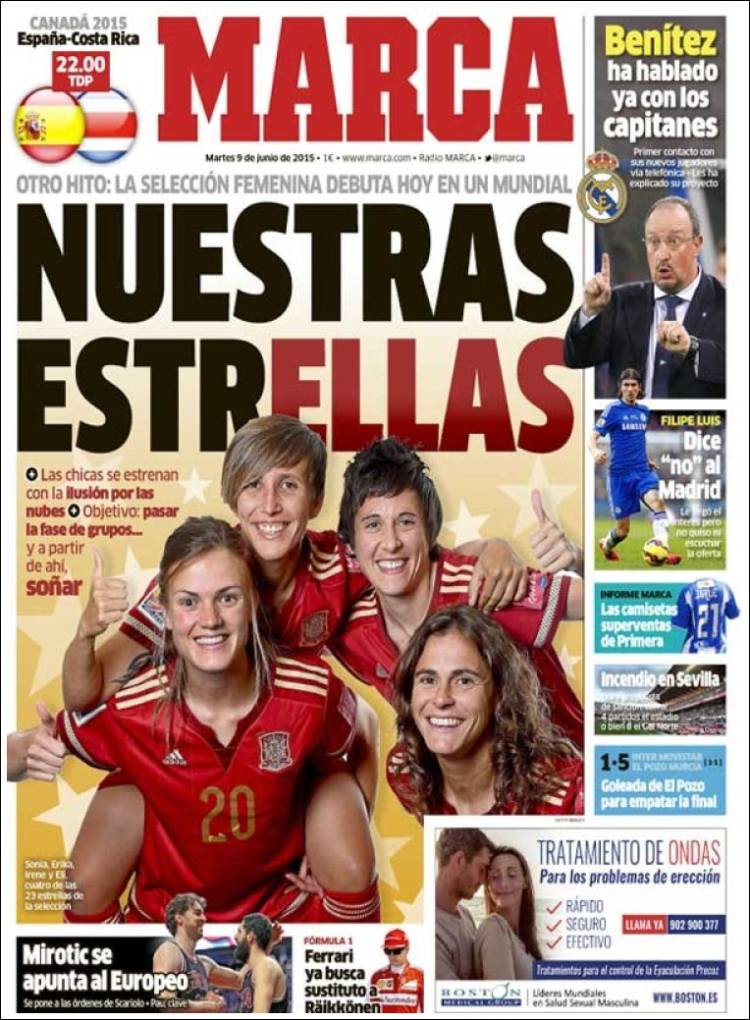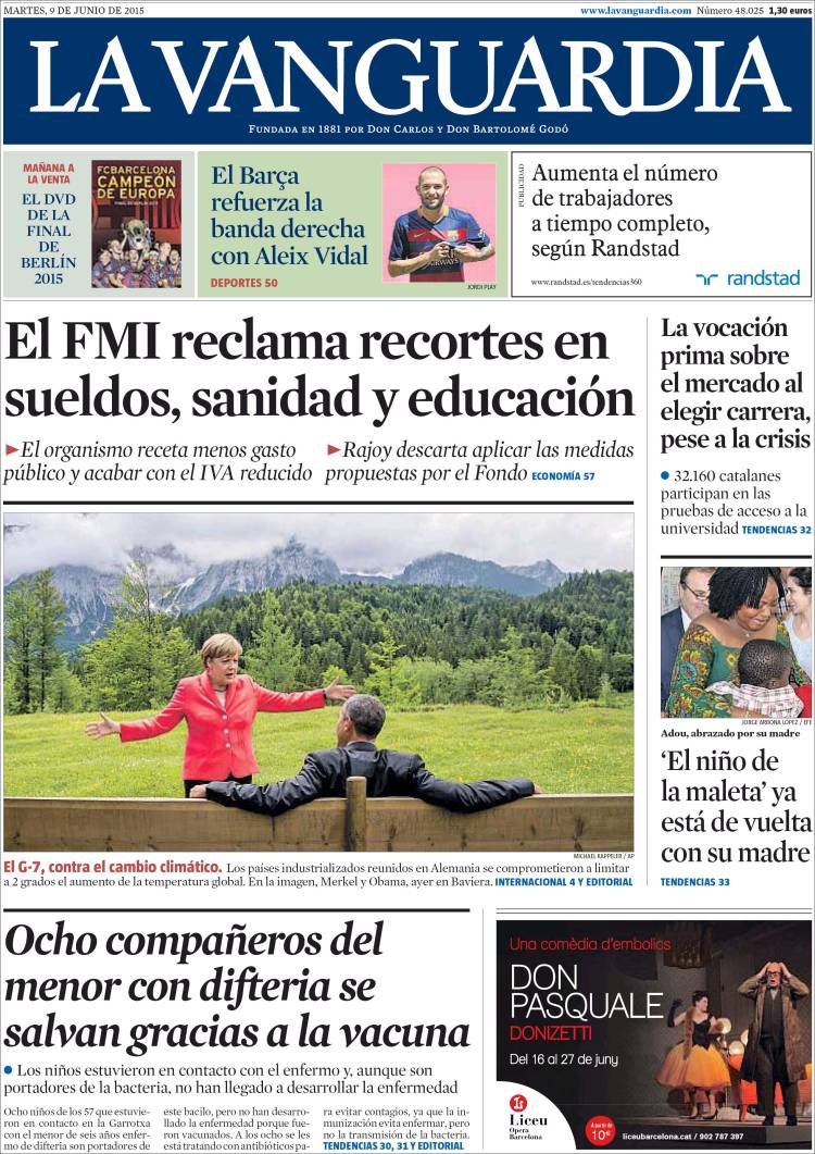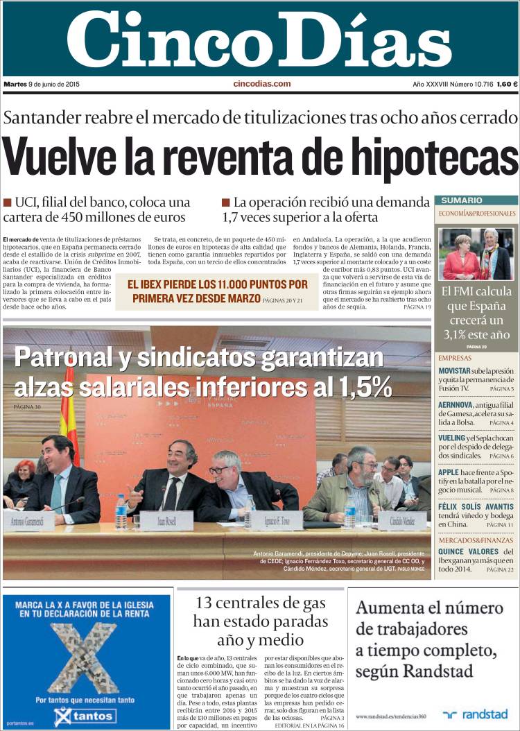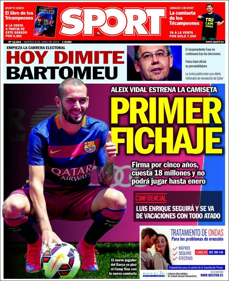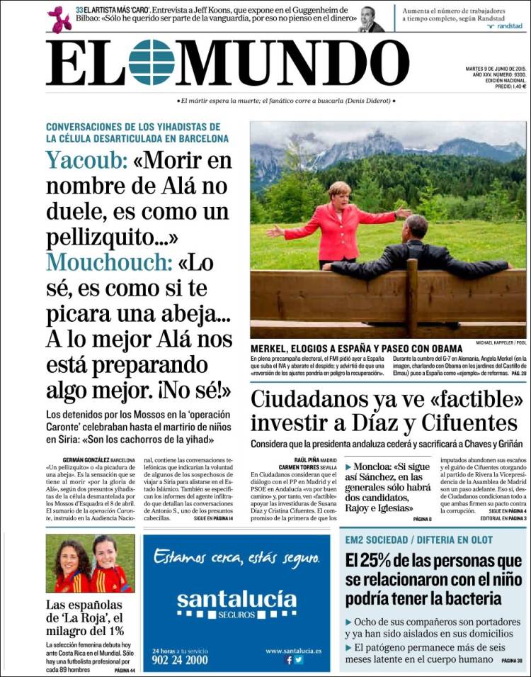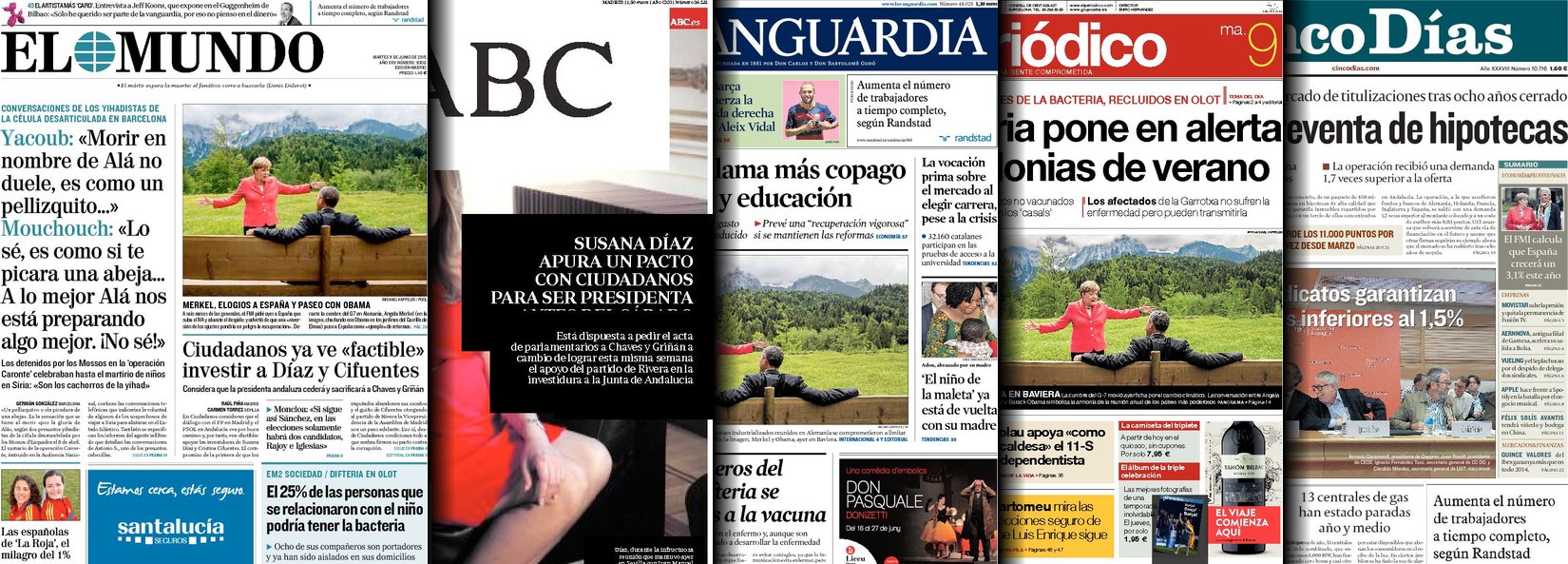 Portadas de los diarios El Mundo, El País, ABC, La Razón, La Vanguardia, El Periódico, Cinco Días, El Economista, Expansión, Marca, As, Mundo Deportivo y Sport.