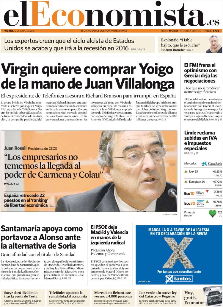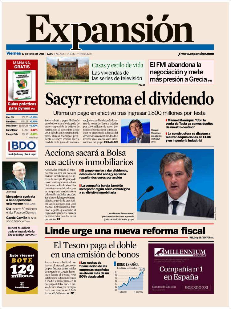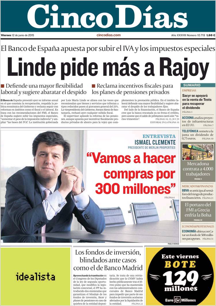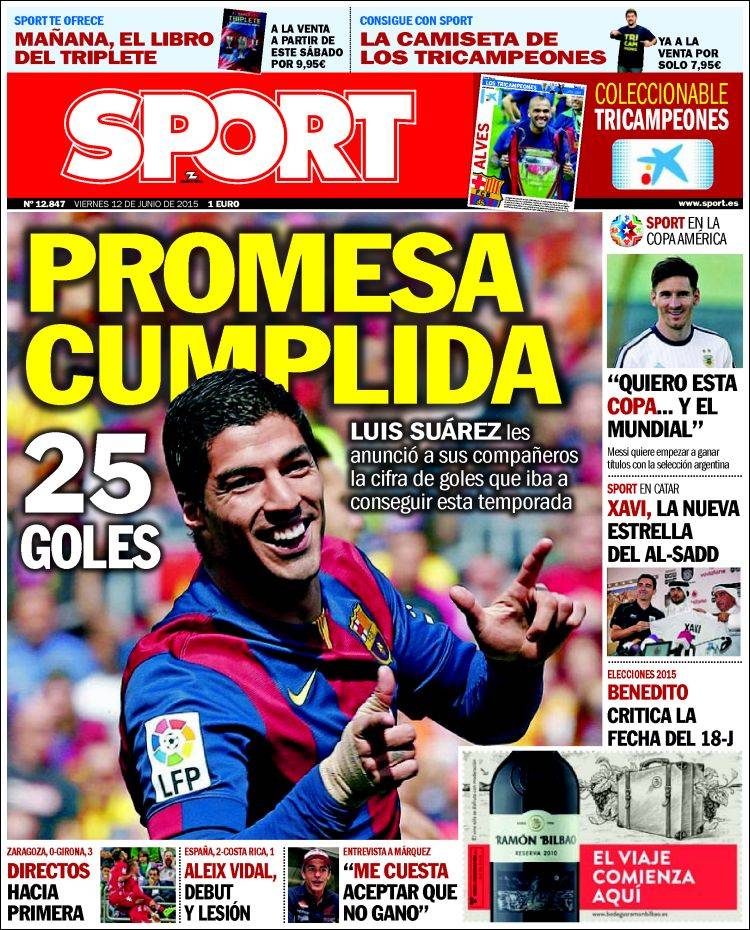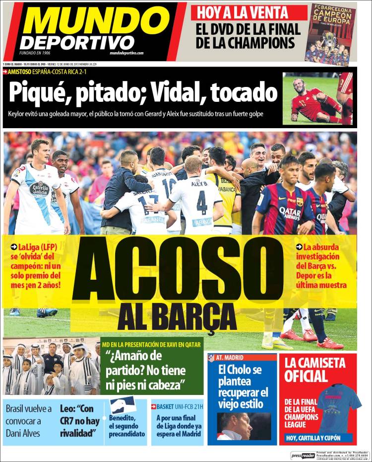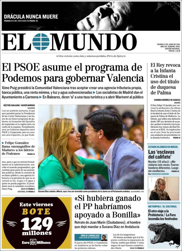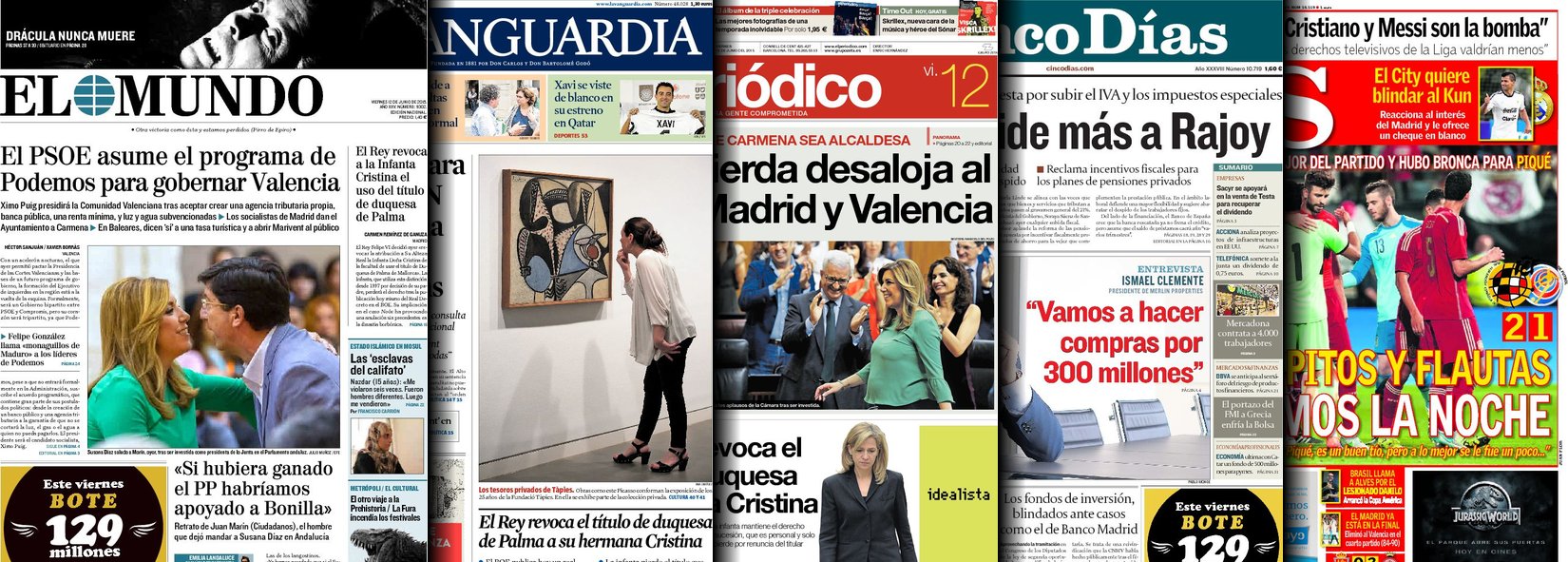 Portadas de los diarios El Mundo, El País, ABC, La Razón, La Vanguardia, El Periódico, Cinco Días, El Economista, Expansión, Marca, As, Mundo Deportivo y Sport.
