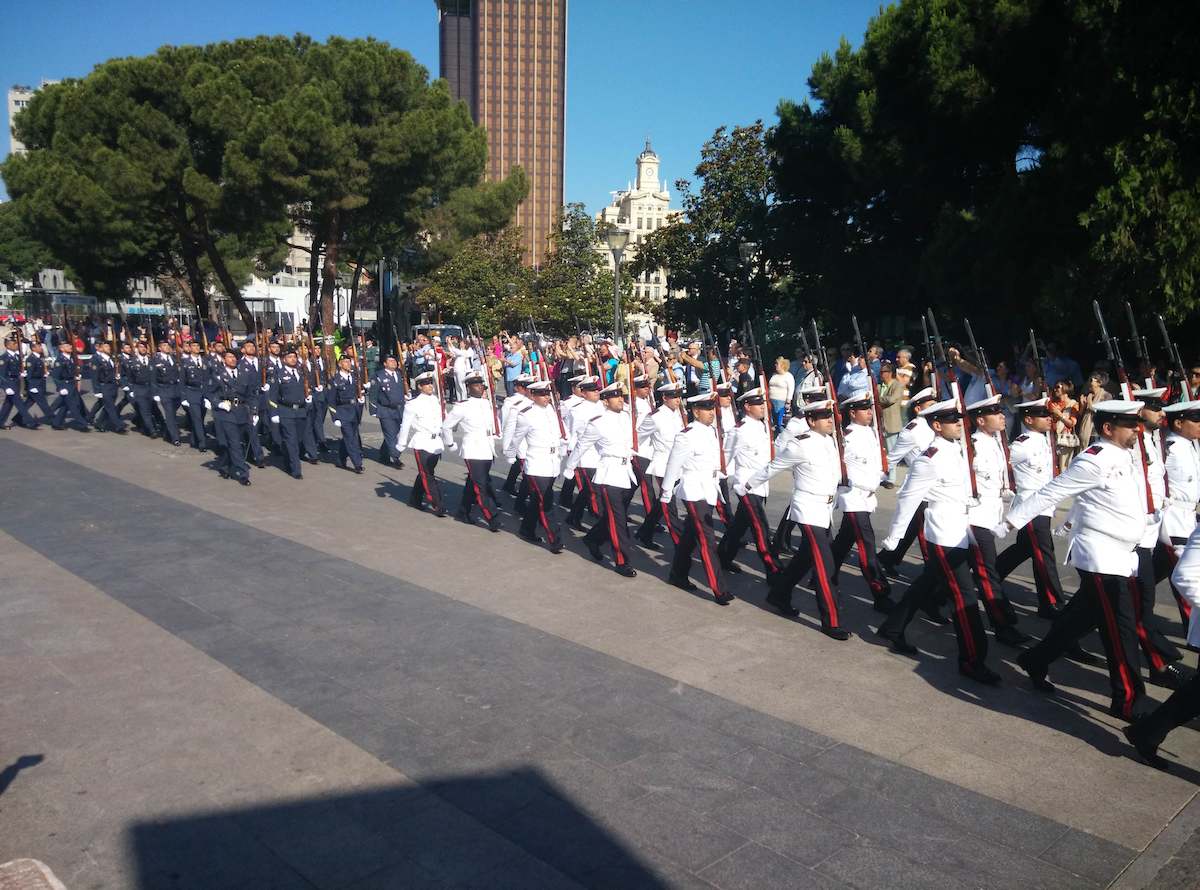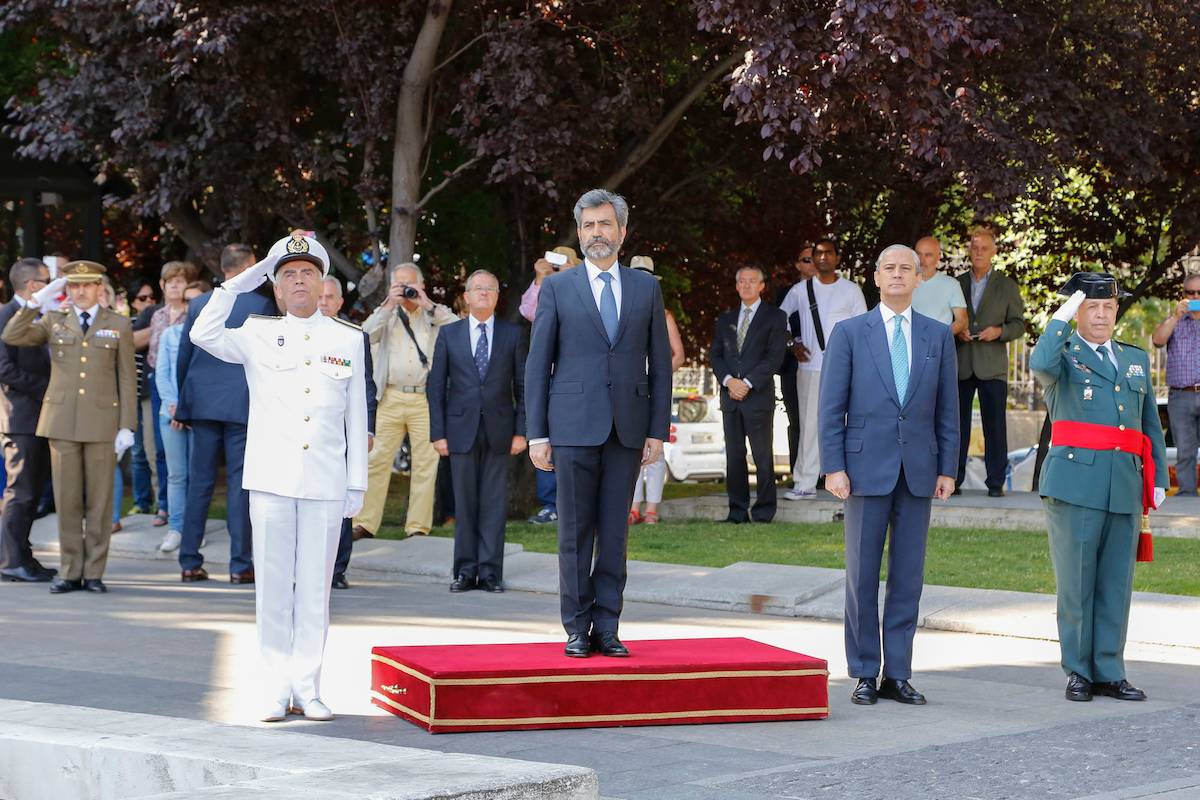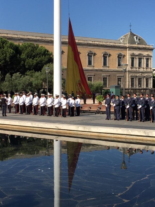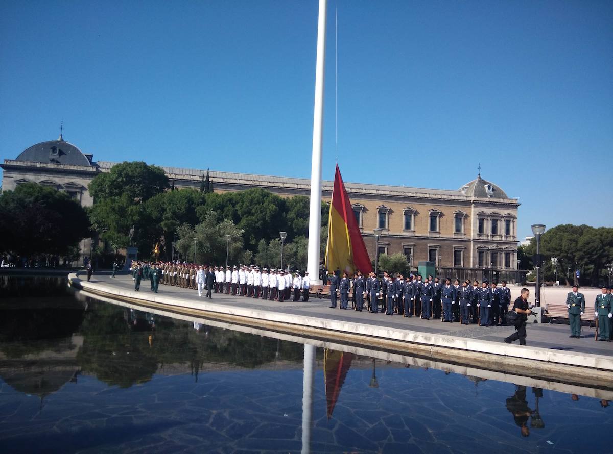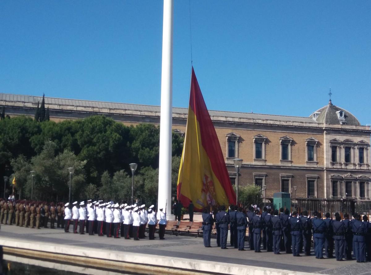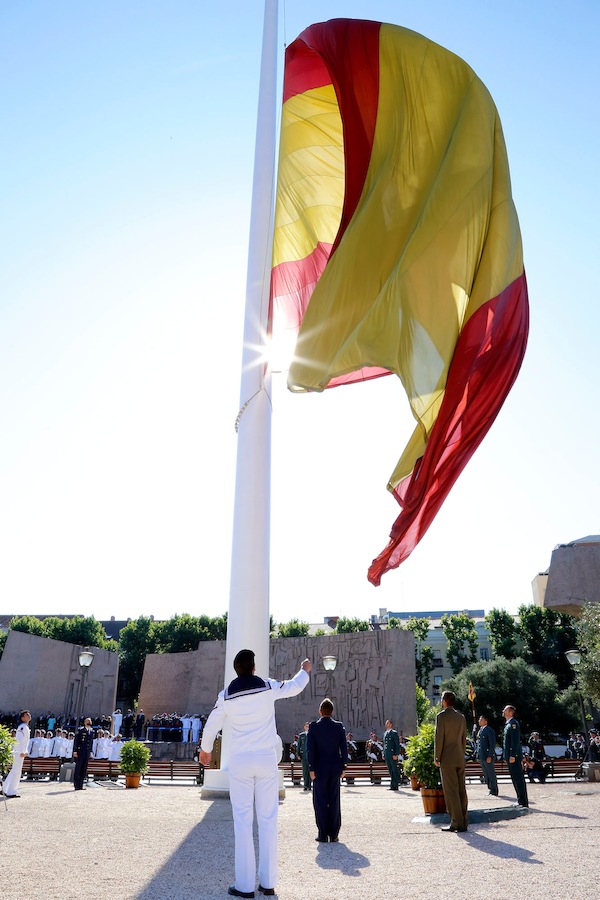 Izado solemne de la bandera de España con motivo del primer aniversario de la proclamación de Felipe VI.