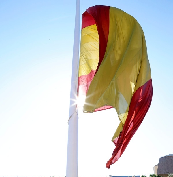 Los Jardines del Descubrimiento de la plaza Colón de Madrid han sido este viernes el escenario del acto solemne de izado de la bandera de España más grande del país con motivo del primer aniversario de la proclamación de Felipe VI como Rey de España