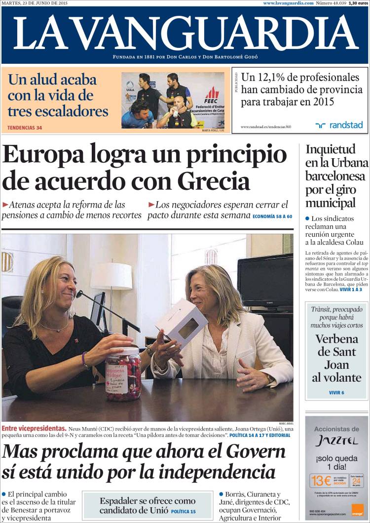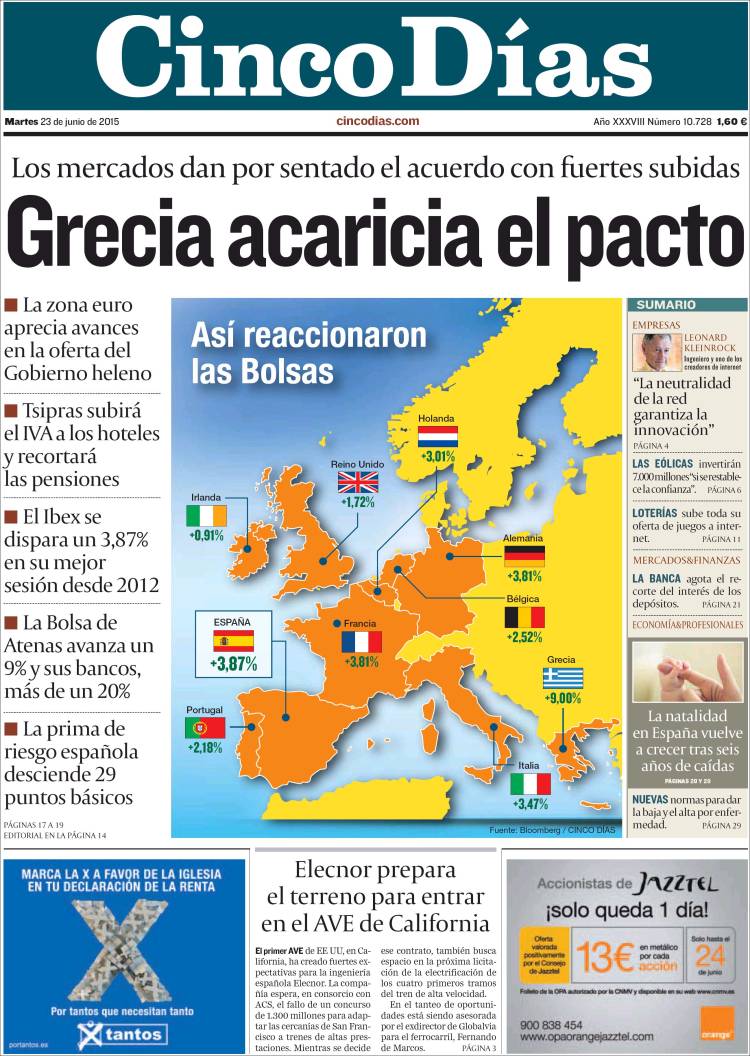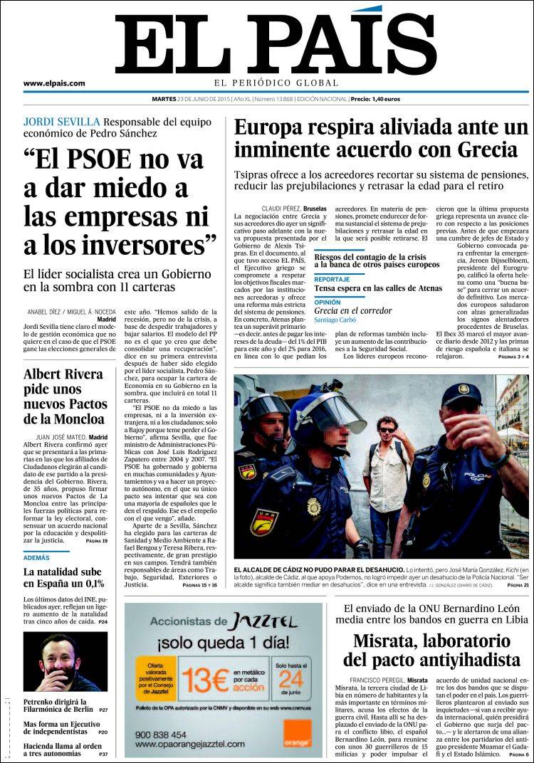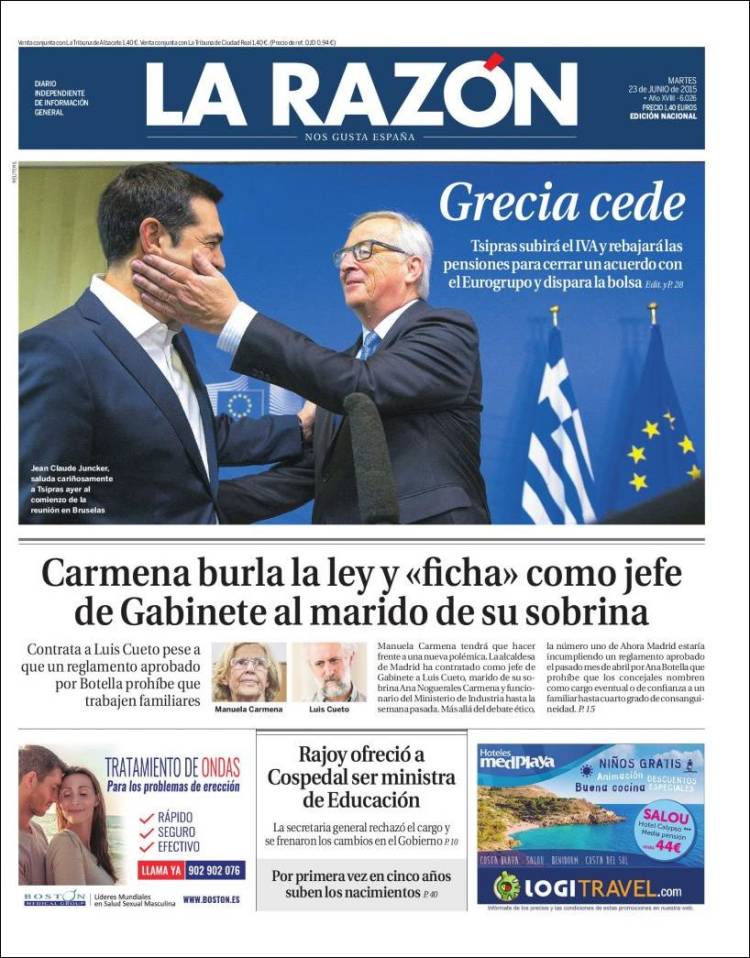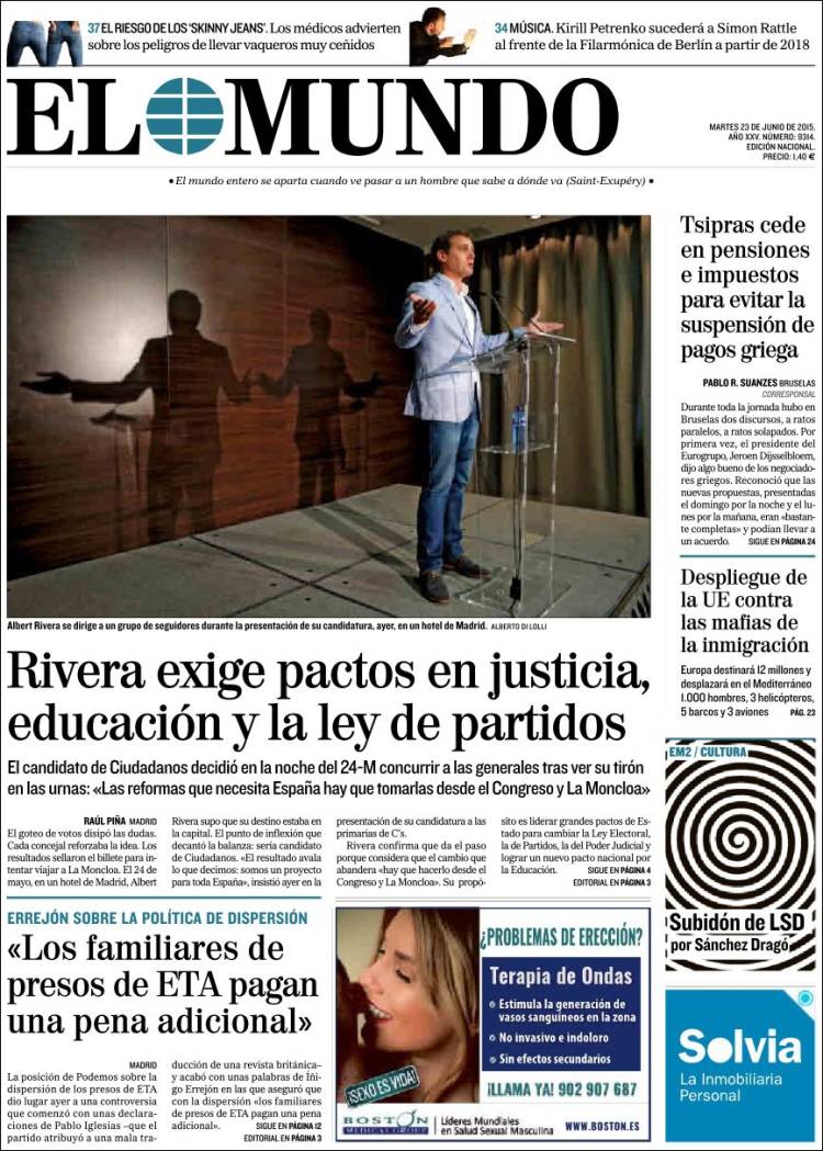 Portadas de los diarios El Mundo, El País, ABC, La Razón, La Vanguardia, El Periódico, Cinco Días, El Economista, Expansión, Marca, As, Mundo Deportivo y Sport.