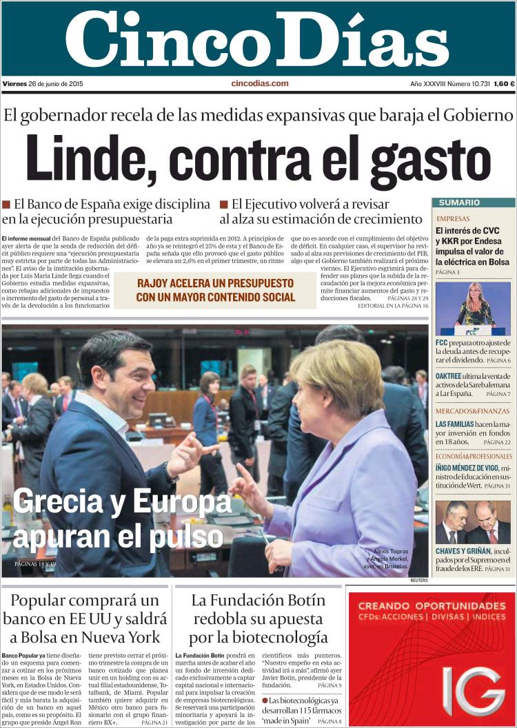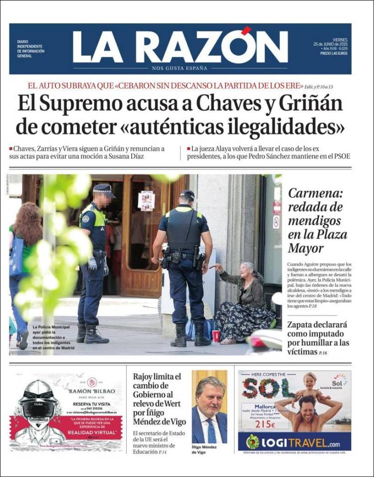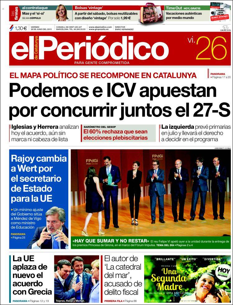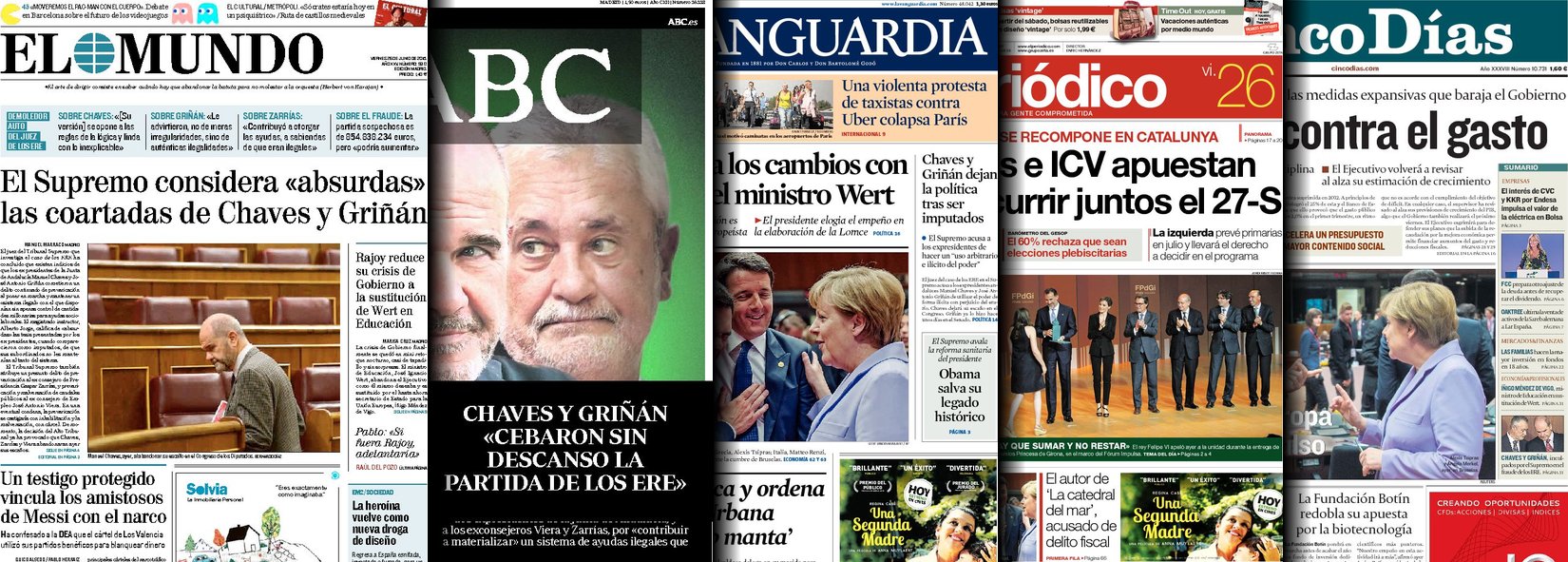Portadas de los diarios El Mundo, El País, ABC, La Razón, La Vanguardia, El Periódico, Cinco Días, El Economista, Expansión, Marca, As, Mundo Deportivo y Sport.