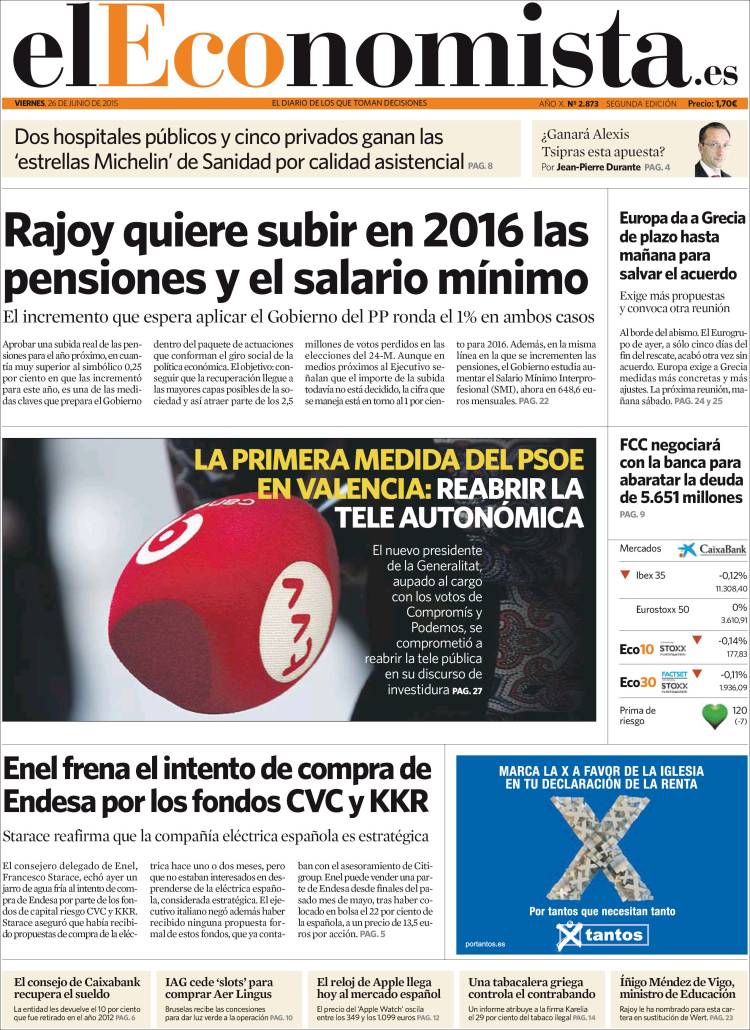 "Rajoy quiere subir en 2016 las pensiones y el salario mínimo"