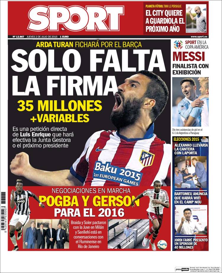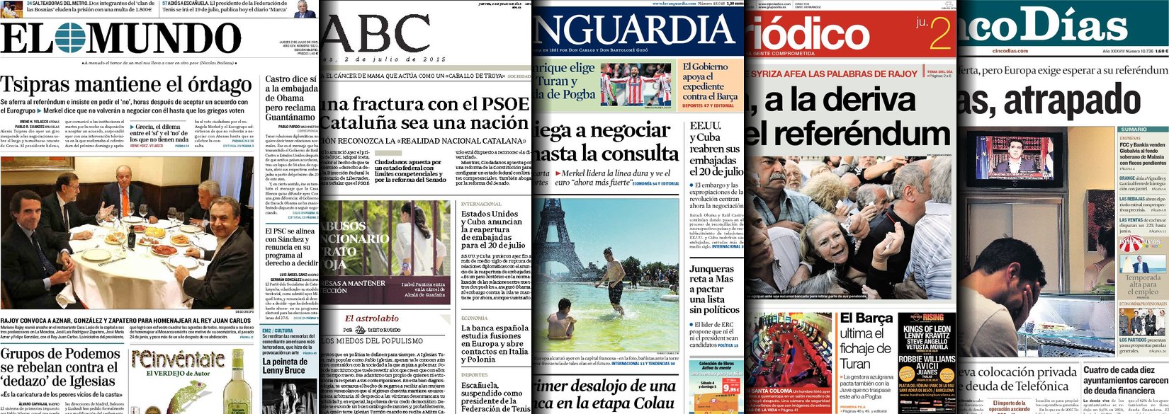 Portadas de los diarios El Mundo, El País, ABC, La Razón, La Vanguardia, El Periódico, Cinco Días, El Economista, Expansión, Marca, As y Sport.
