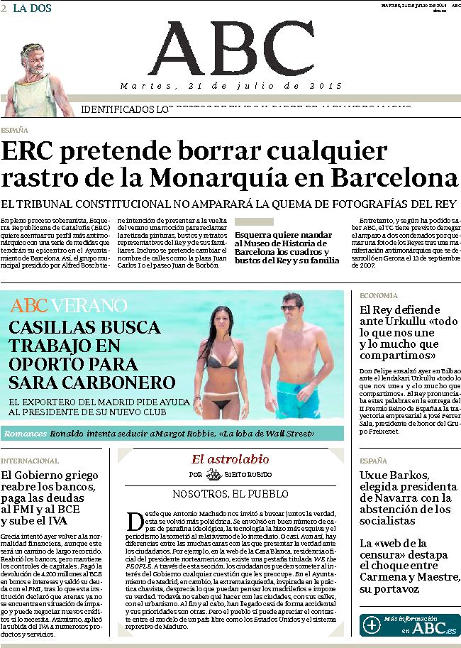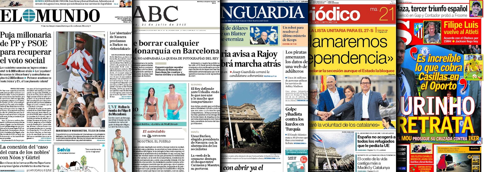 Portadas de los diarios ABC, As, El Periódico y La Vanguardia.
