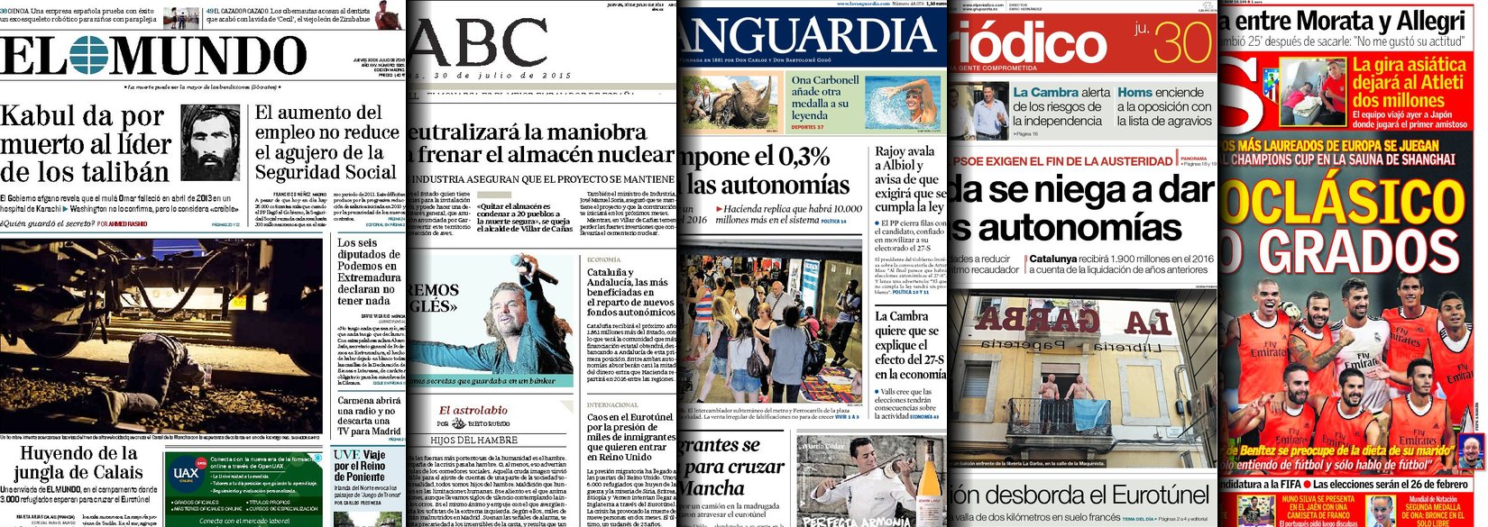 Portadas de los diarios ABC, As, El Periódico y La Vanguardia.