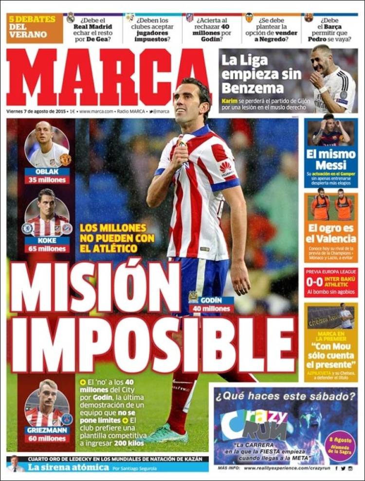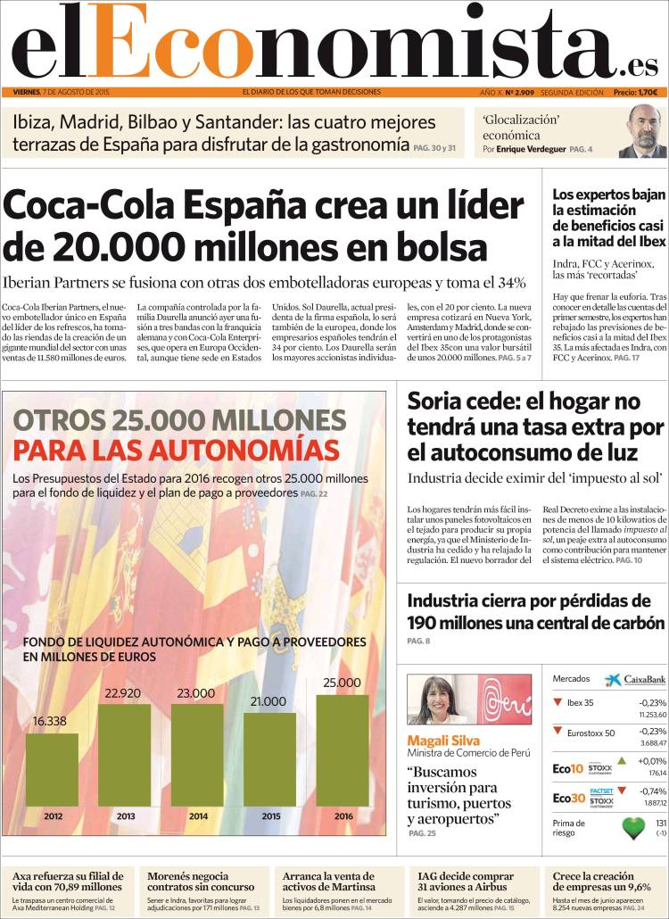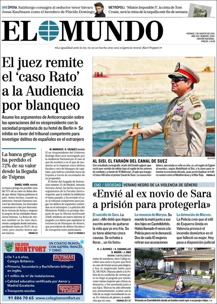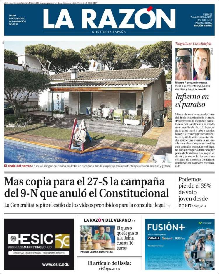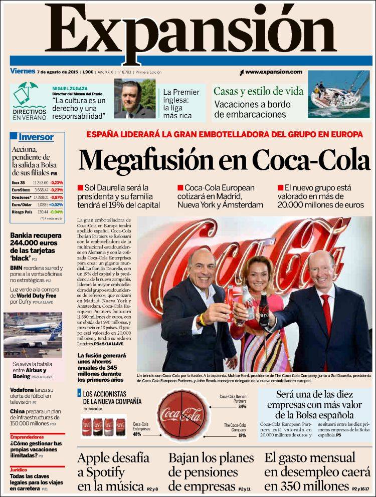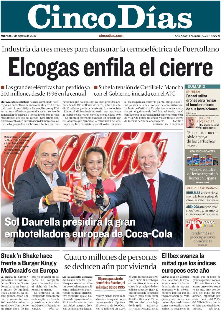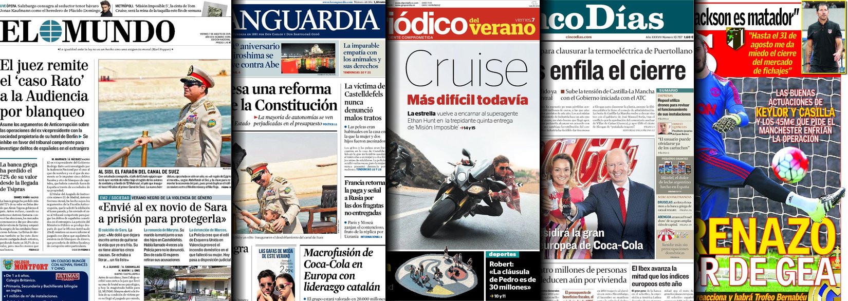 Portadas de los diarios El Mundo, El País, ABC, La Razón, La Vanguardia, El Periódico, Cinco Días, El Economista, Expansión, Marca, As, Mundo Deportivo y Sport.