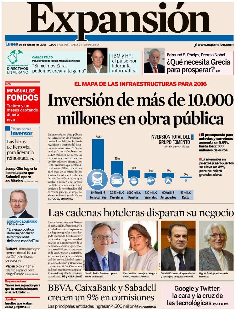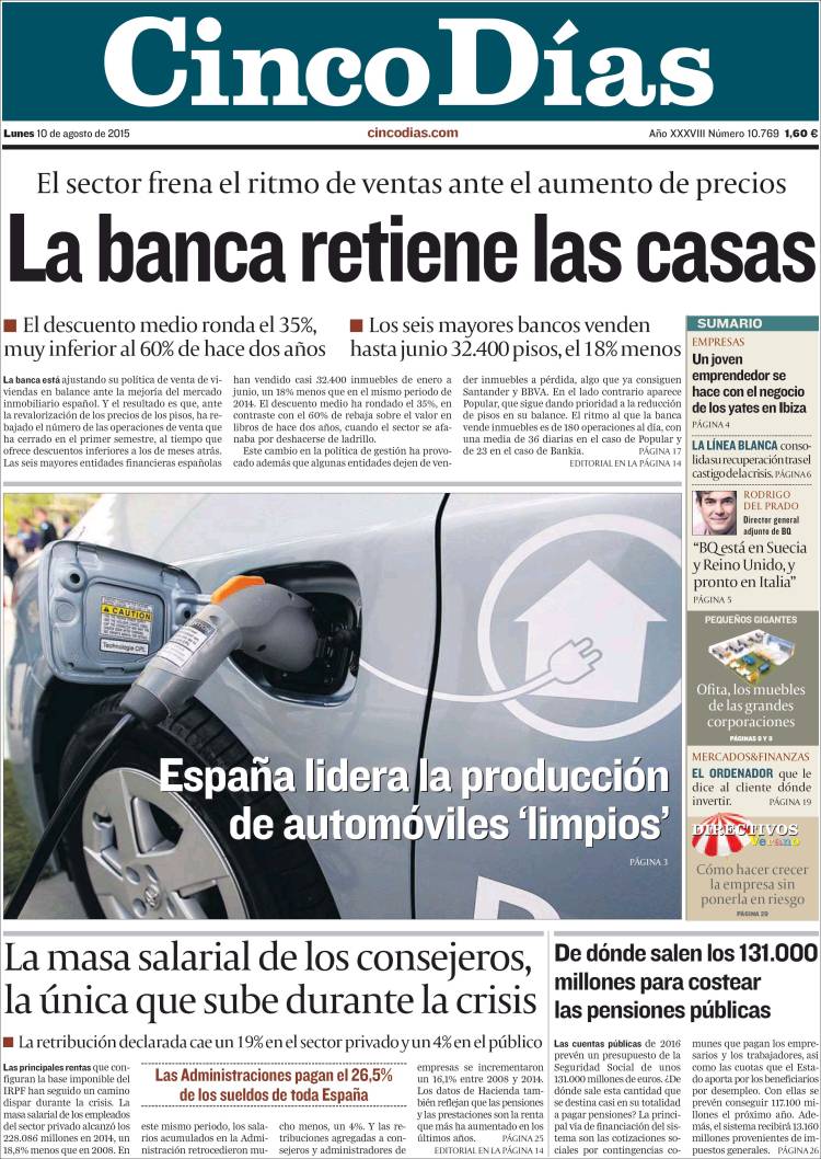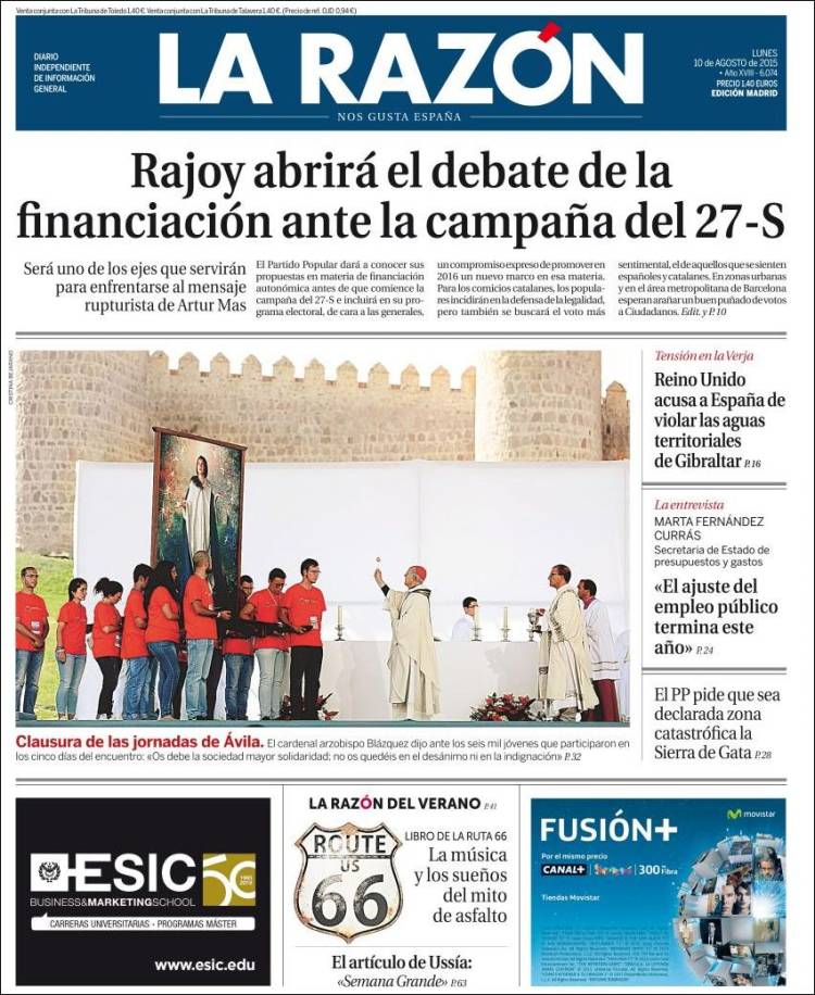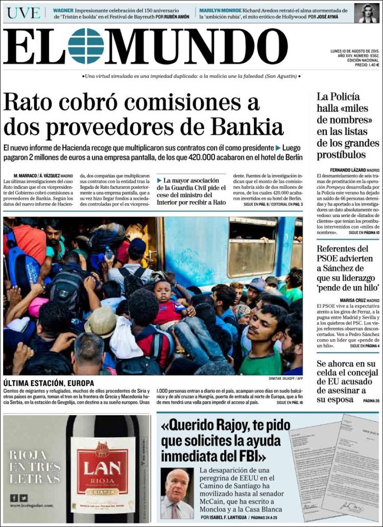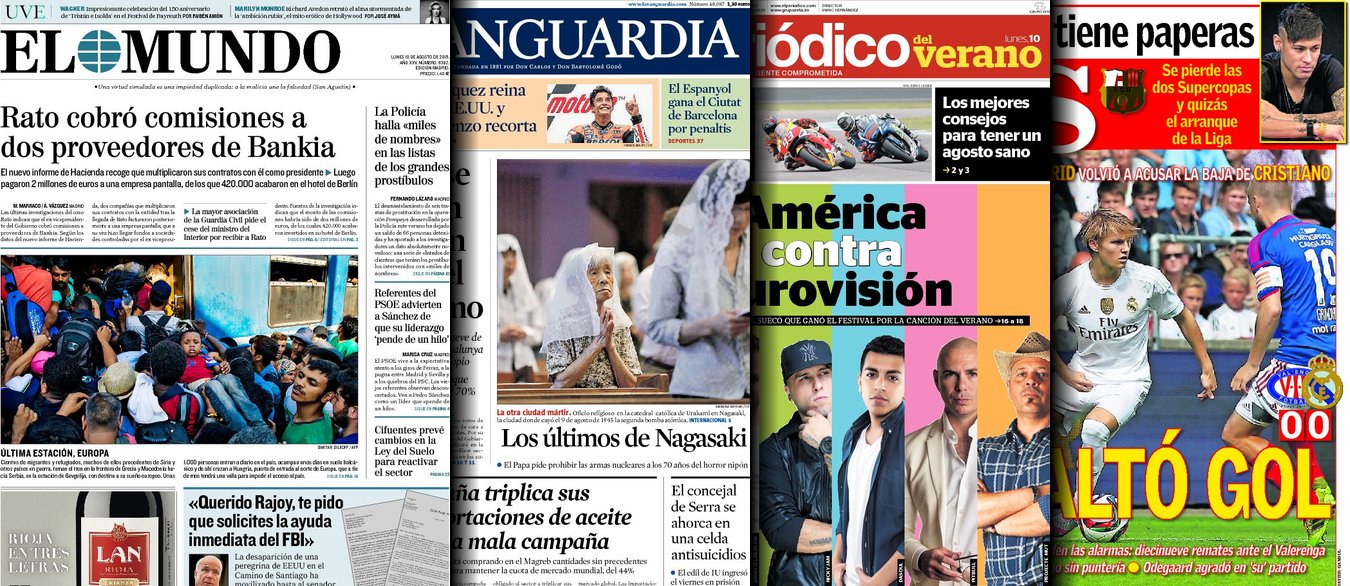 Portadas de los diarios El Mundo, El País, ABC, La Razón, La Vanguardia, El Periódico, Cinco Días, El Economista, Expansión, Marca, As, Mundo Deportivo y Sport.