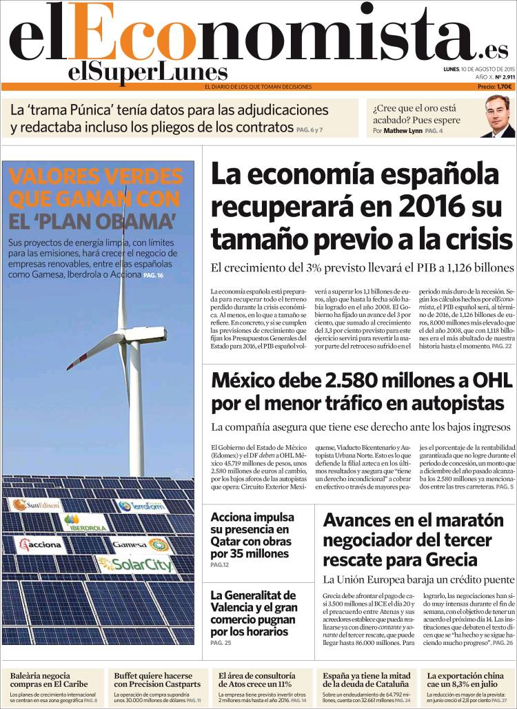 "La economía española recuperará en 2016 su tamaño previo a la crisis"