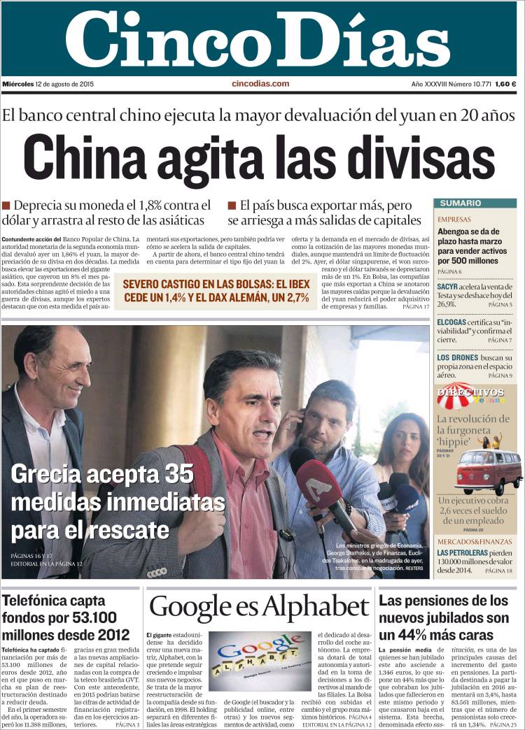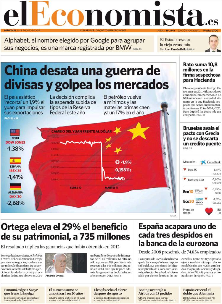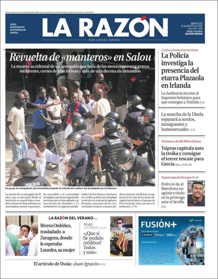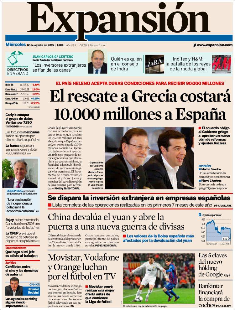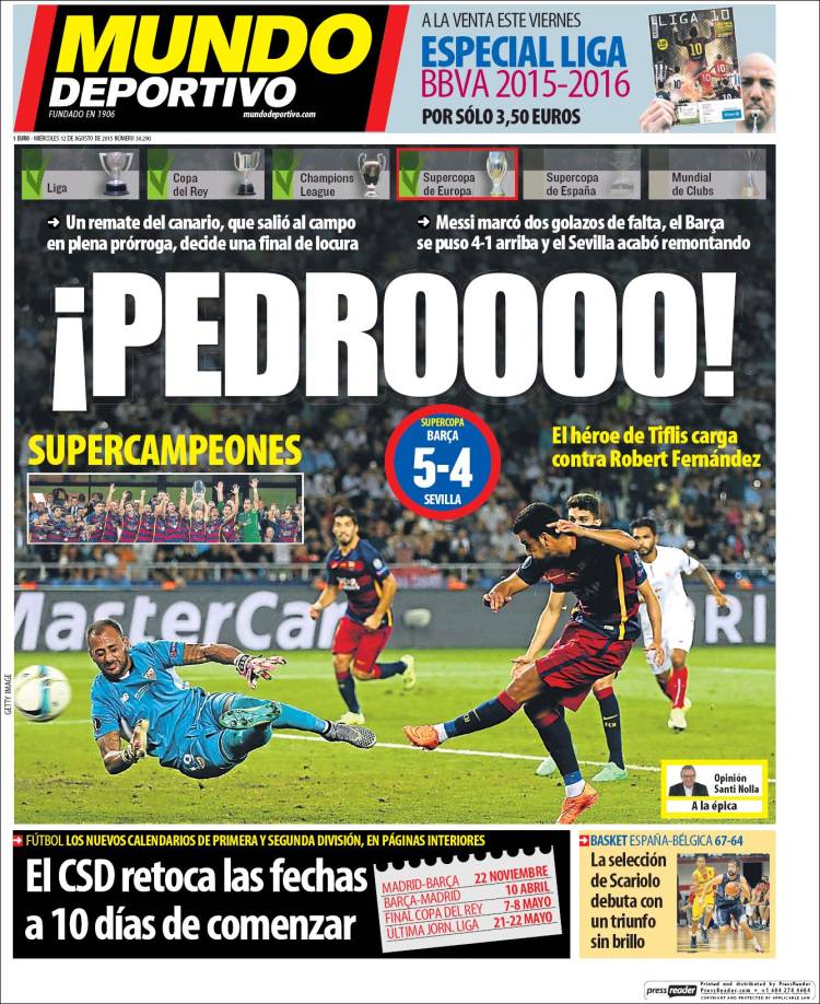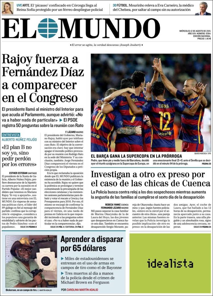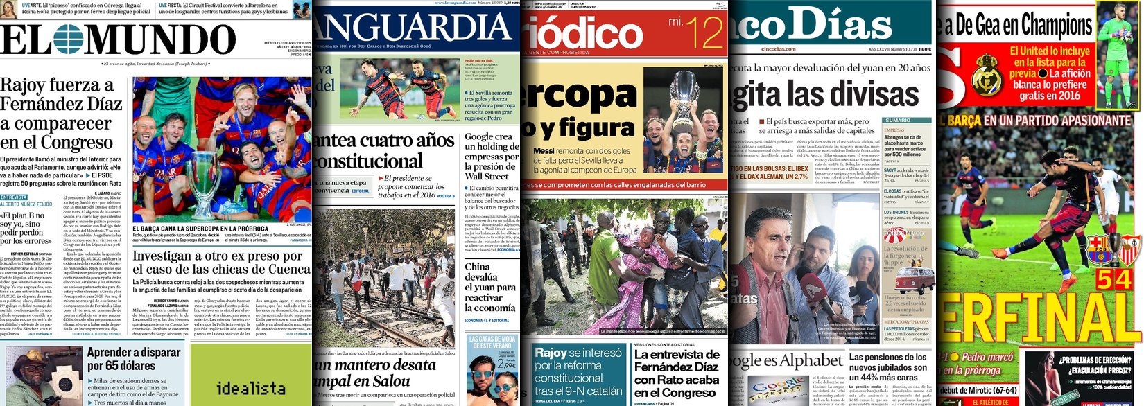 Portadas de los diarios El Mundo, El País, ABC, La Razón, La Vanguardia, El Periódico, Cinco Días, El Economista, Expansión, Marca, As, Mundo Deportivo y Sport.