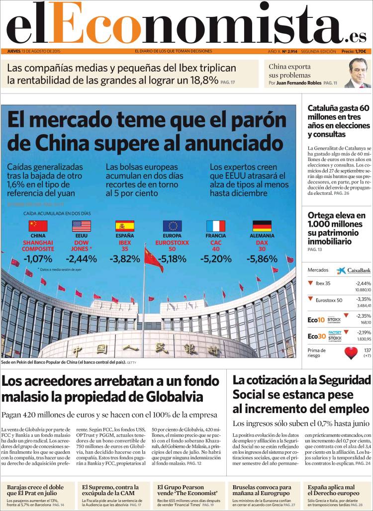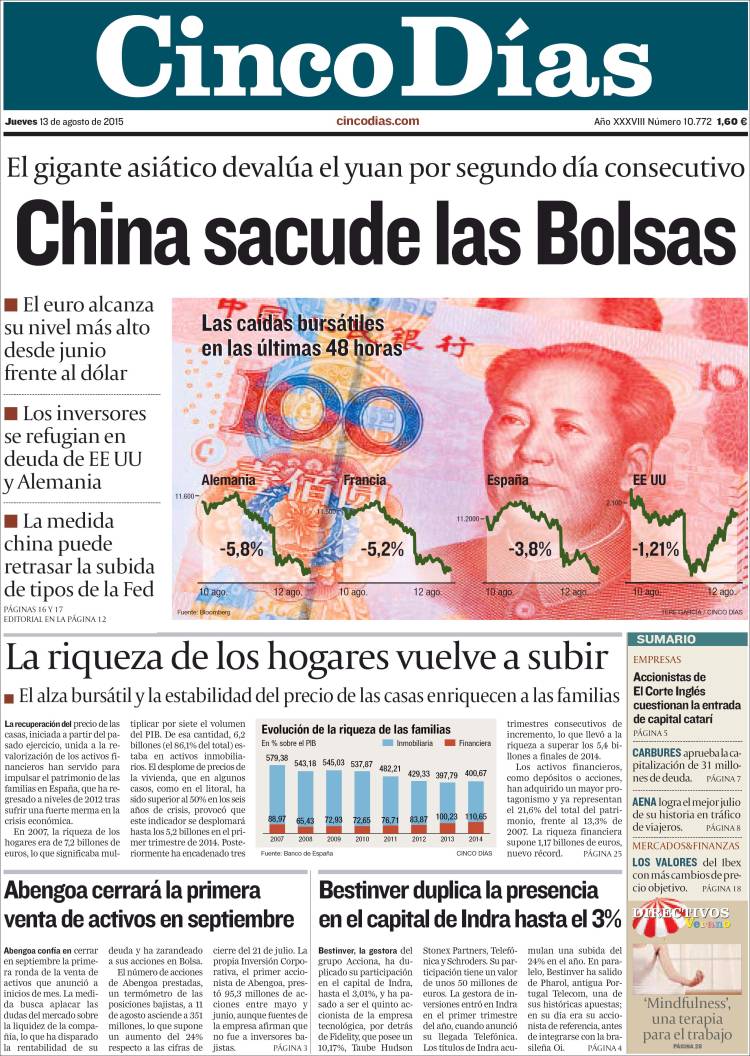 "Crece el miedo por la economñia china tras una nueva devaluación"