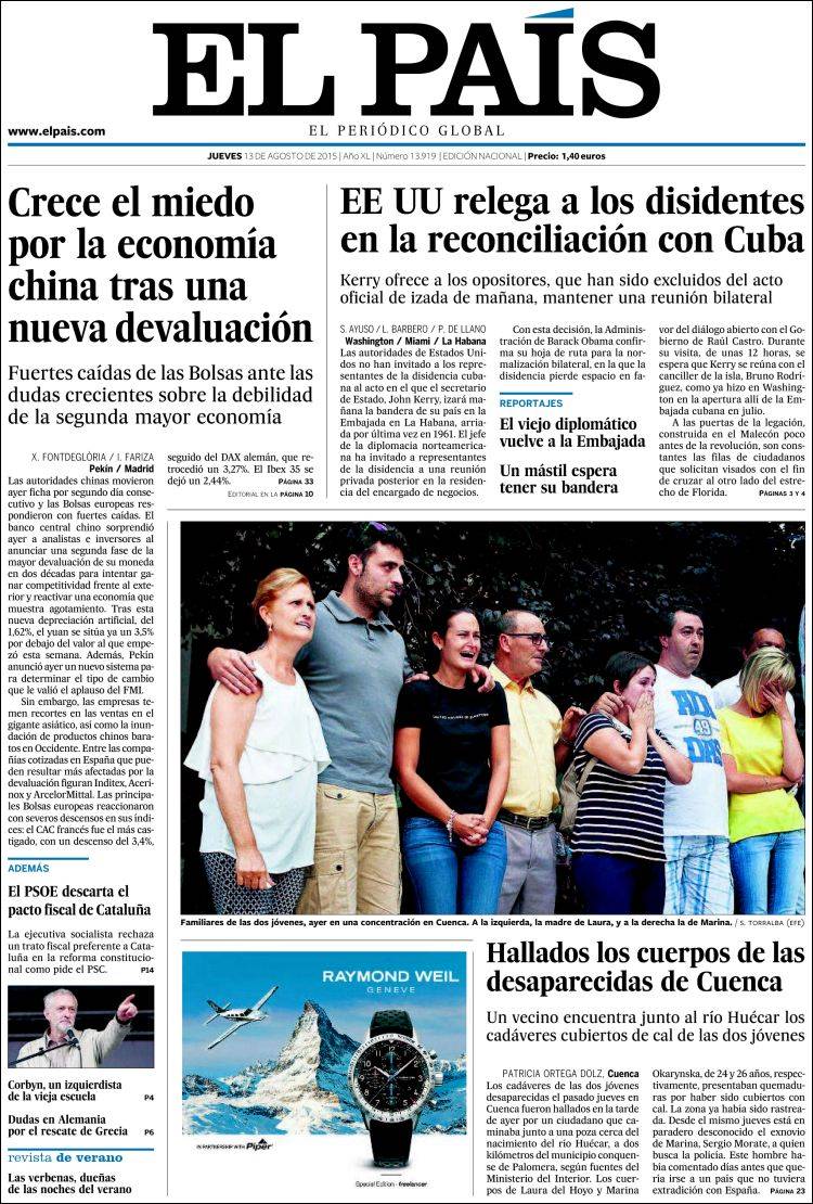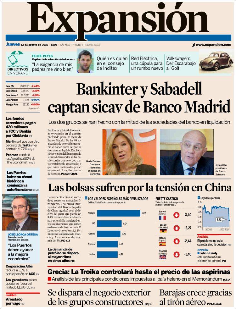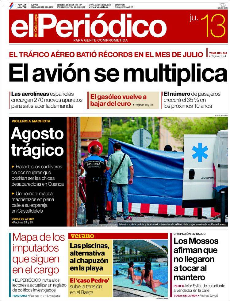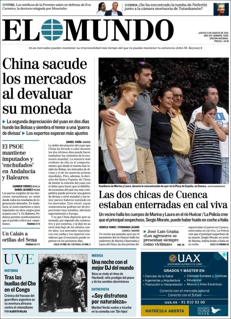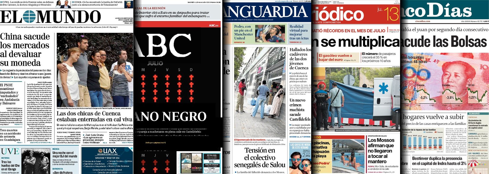 Portadas de los diarios El Mundo, El País, ABC, La Razón, La Vanguardia, El Periódico, Cinco Días, El Economista, Expansión, Marca, As, Mundo Deportivo y Sport.