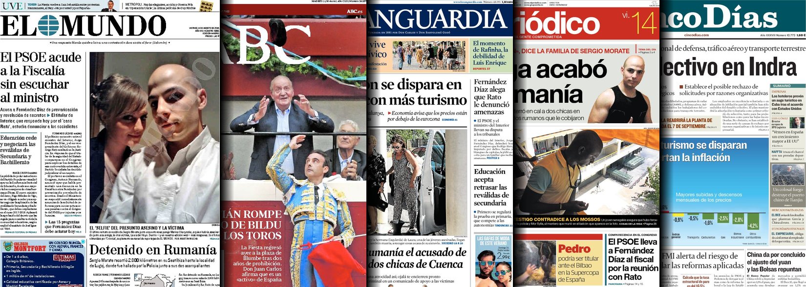 Portadas de los diarios ABC, As, Cinco Días, El Periódico y La Vanguardia.