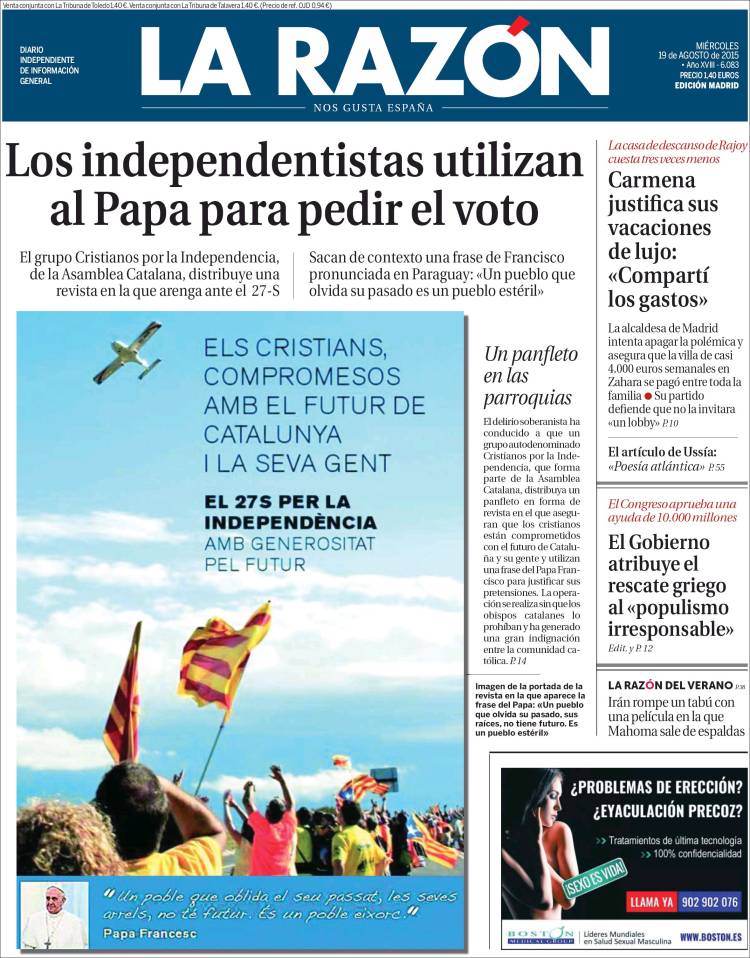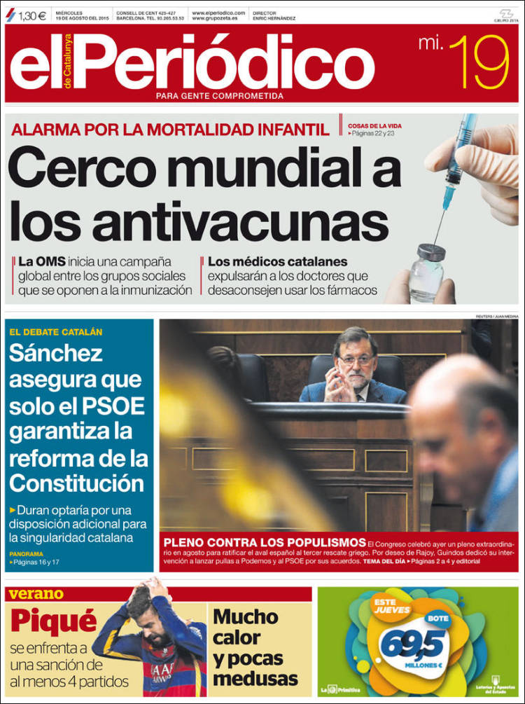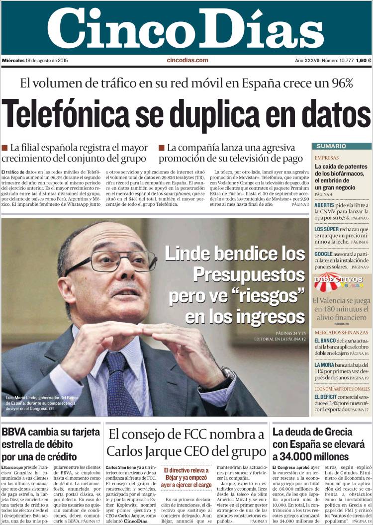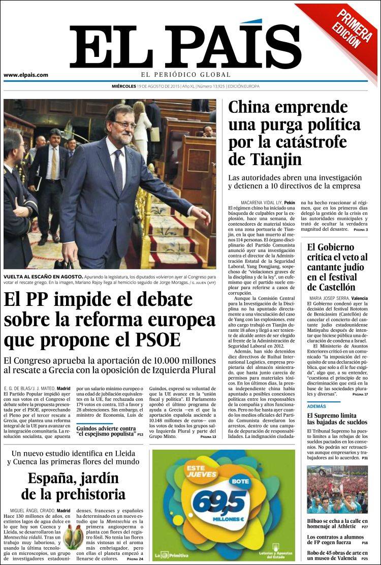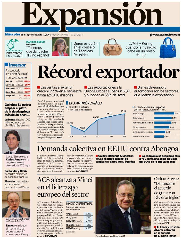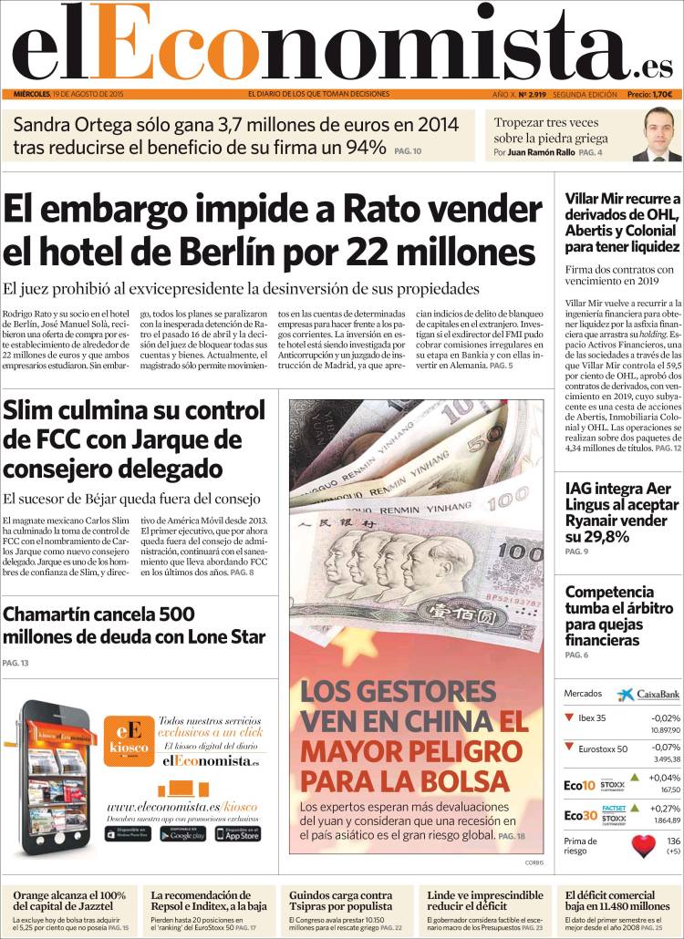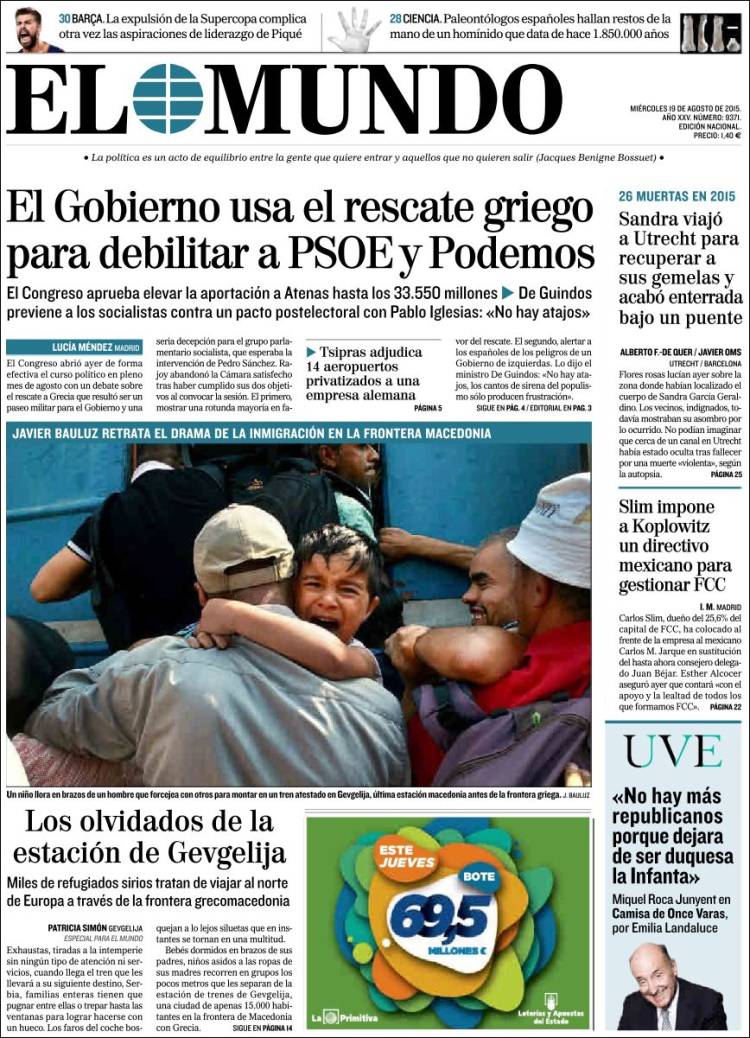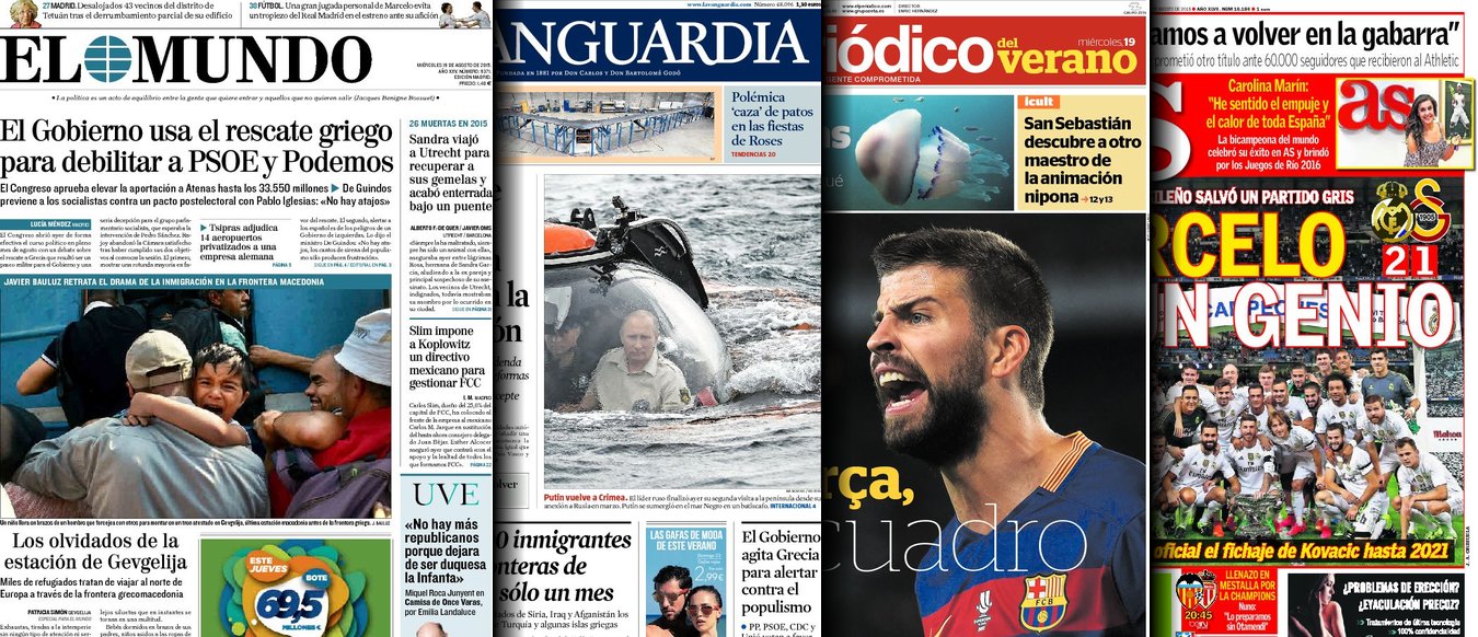 Portadas de los diarios El Mundo, El País, ABC, La Razón, La Vanguardia, El Periódico, Cinco Días, El Economista, Expansión, Marca, As, Mundo Deportivo y Sport.