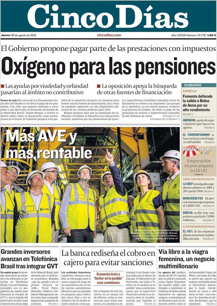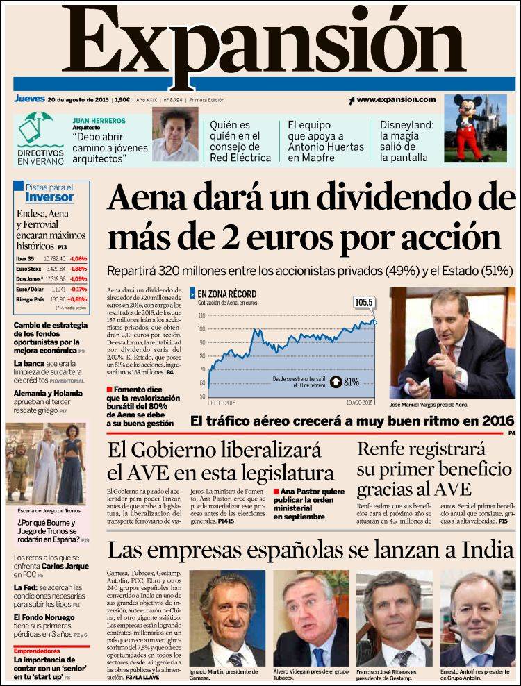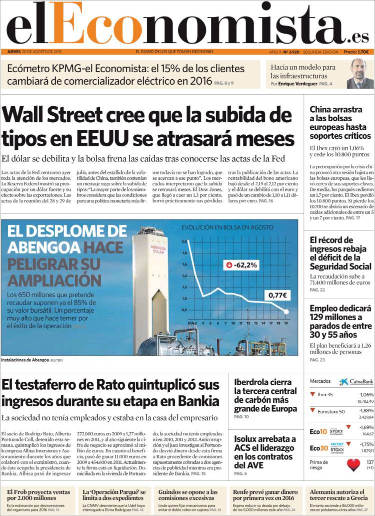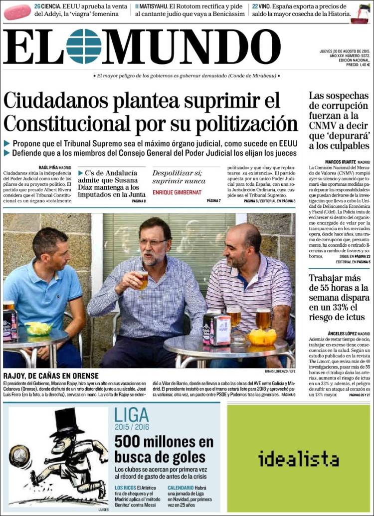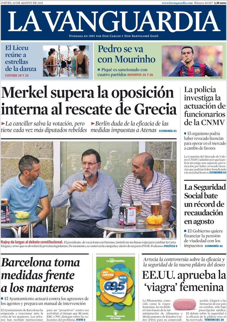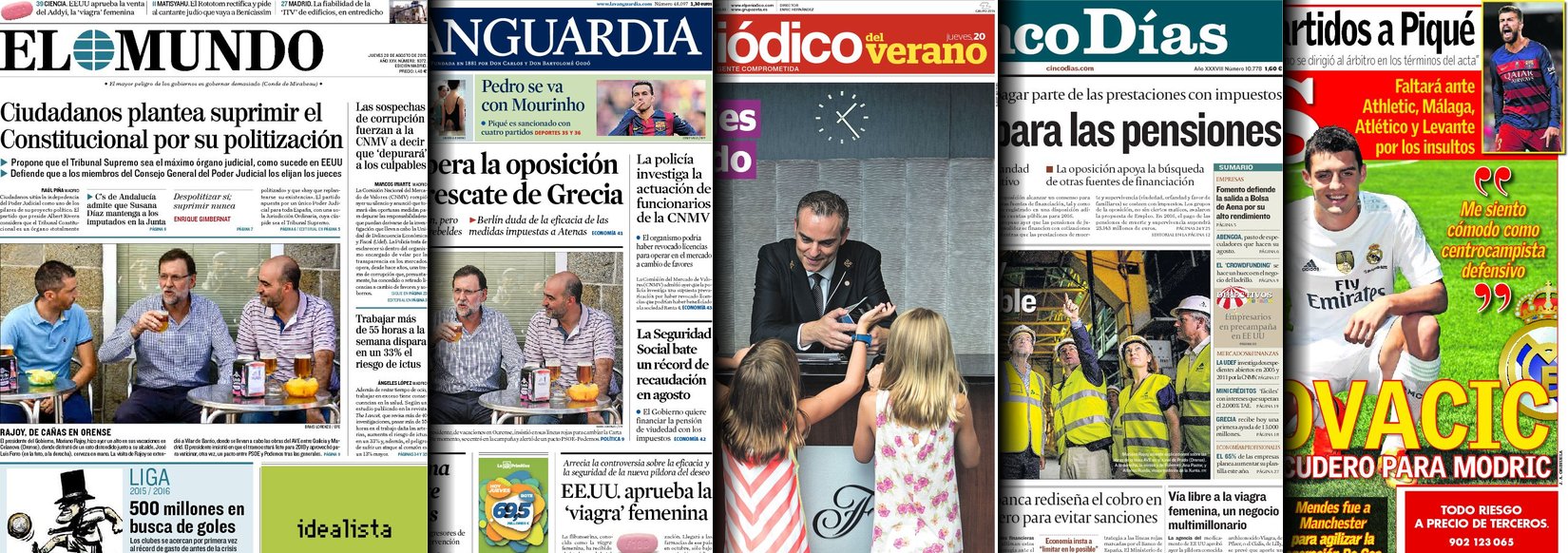 Portadas de los diarios El Mundo, El País, ABC, La Razón, La Vanguardia, El Periódico, Cinco Días, El Economista, Expansión, Marca, As, Mundo Deportivo y Sport.