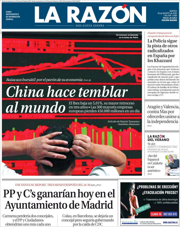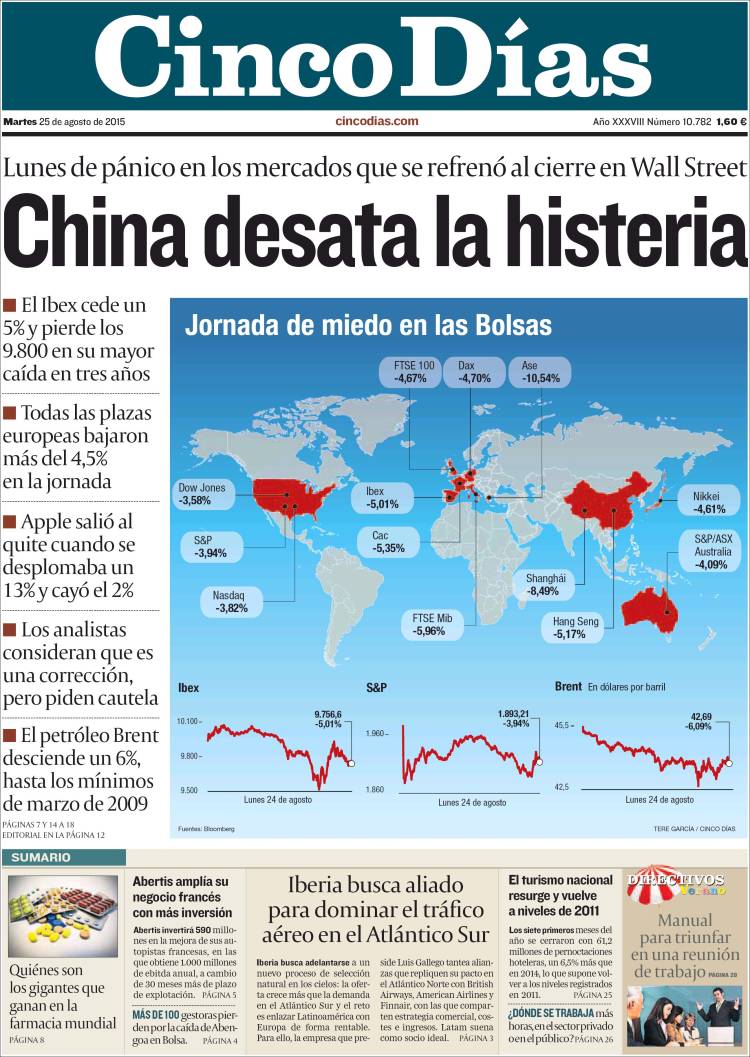 "La crisis china desata el temor a un frenazo económico mundial"