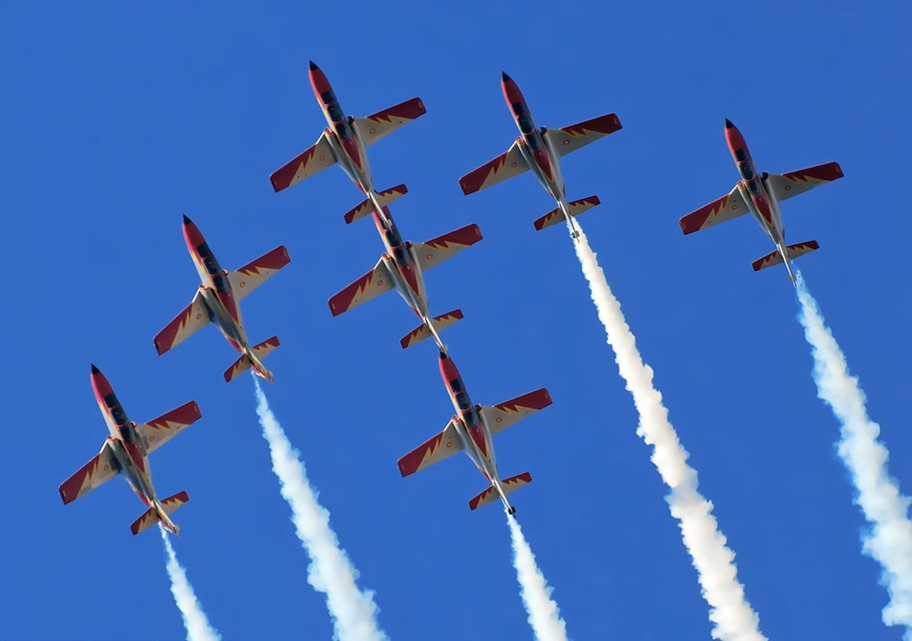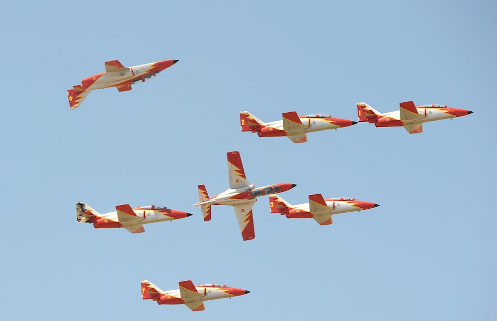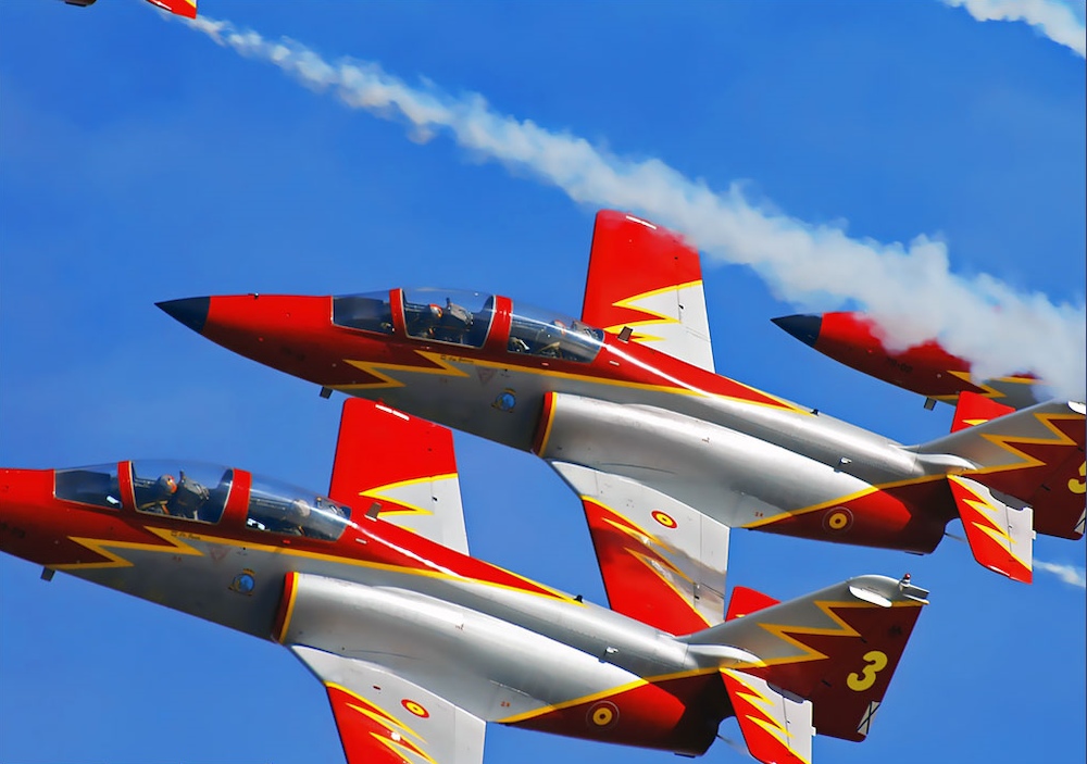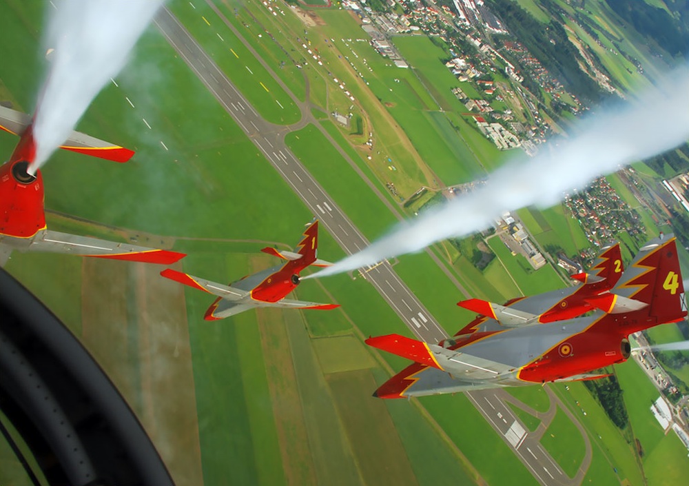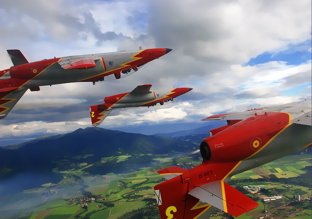 Imágenes de la Patrulla Águila, el grupo de vuelo acrobático con aviones del Ejército del Aire, durante sus espectáculos y entrenamientos.