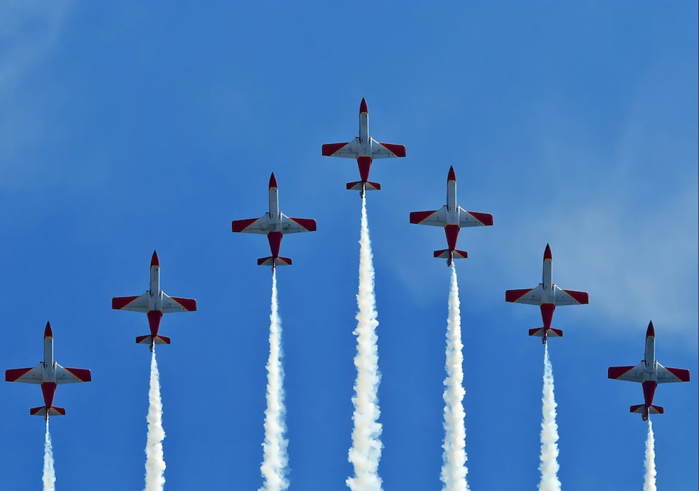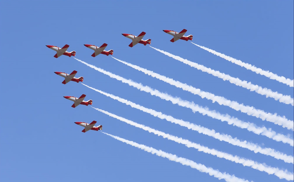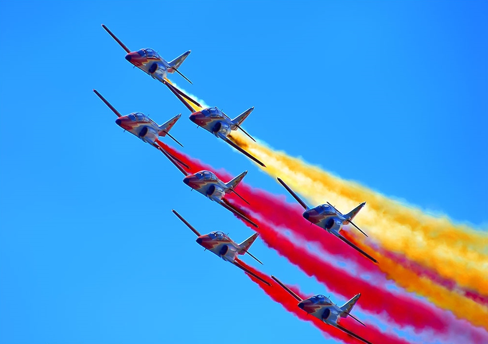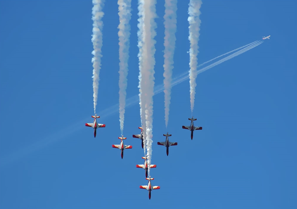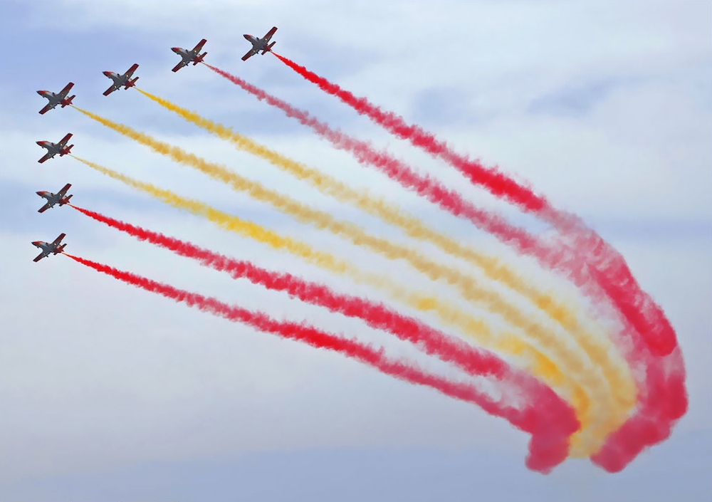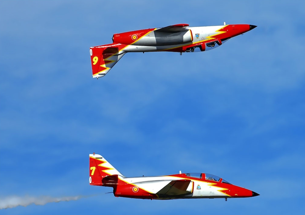 Imágenes de la Patrulla Águila, el grupo de vuelo acrobático con aviones del Ejército del Aire, durante sus espectáculos y entrenamientos.